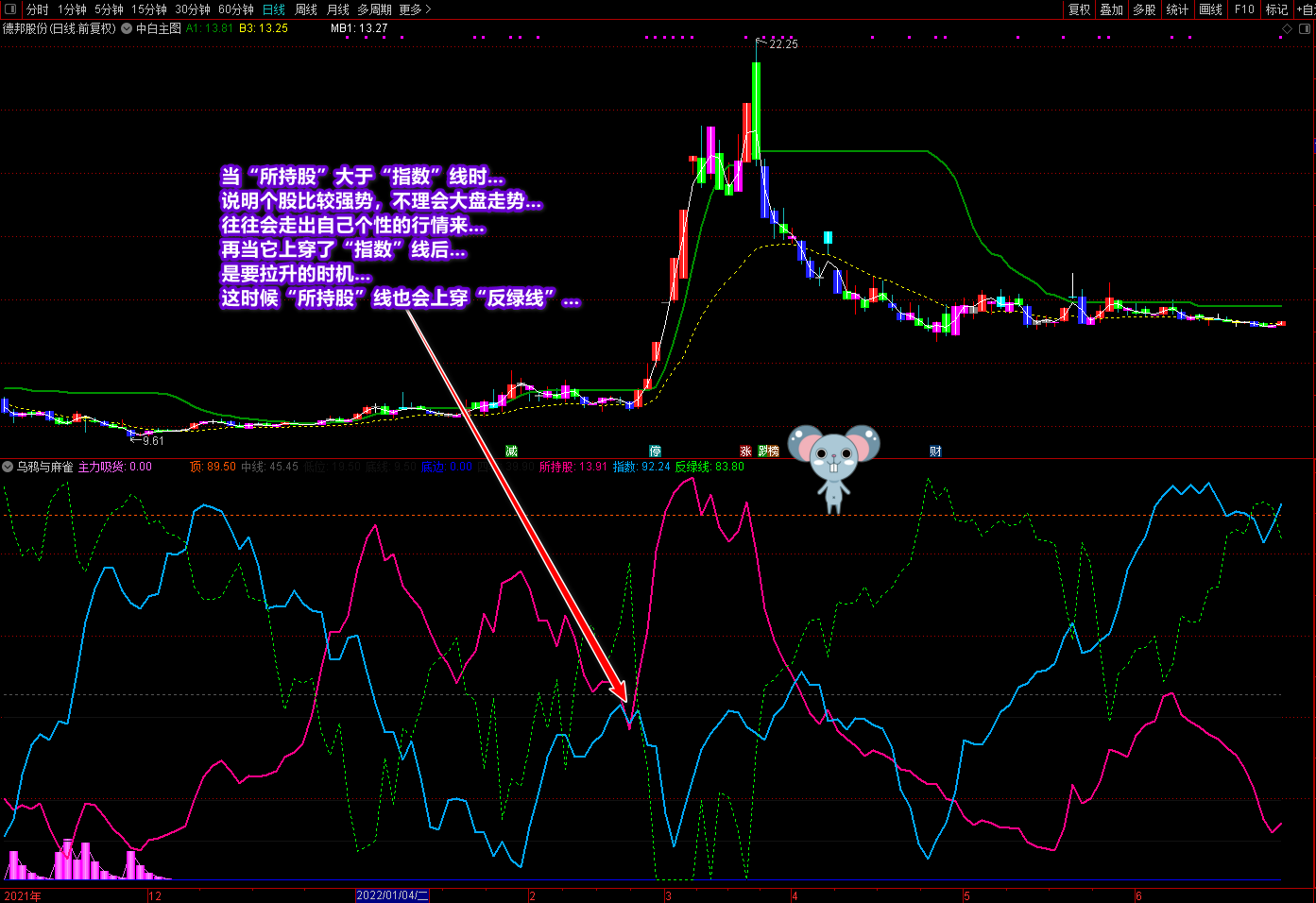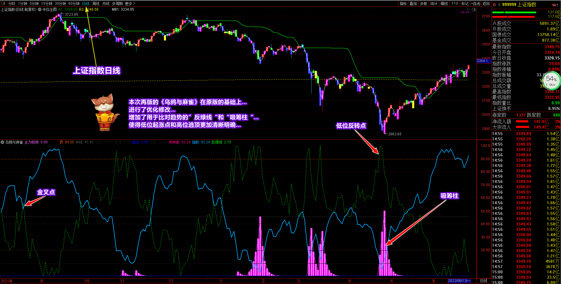 针对部分同学的期待和要求,开发了一个《乌鸦与麻雀》副图指标,旨在让同学们准确把握市场指数与所持股票的关系,判断市场指数与股票的走势,尽早规避市场变化的风险,永远不要再被市场欺骗。