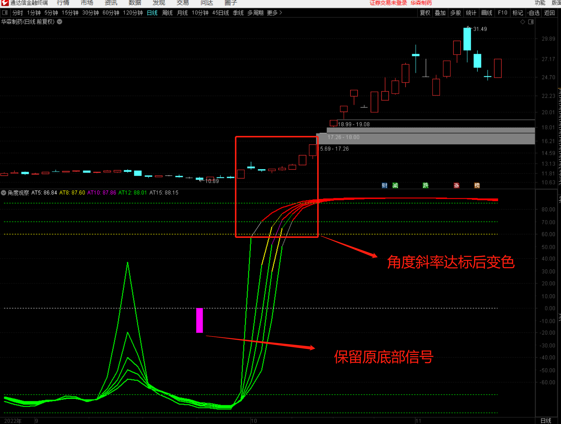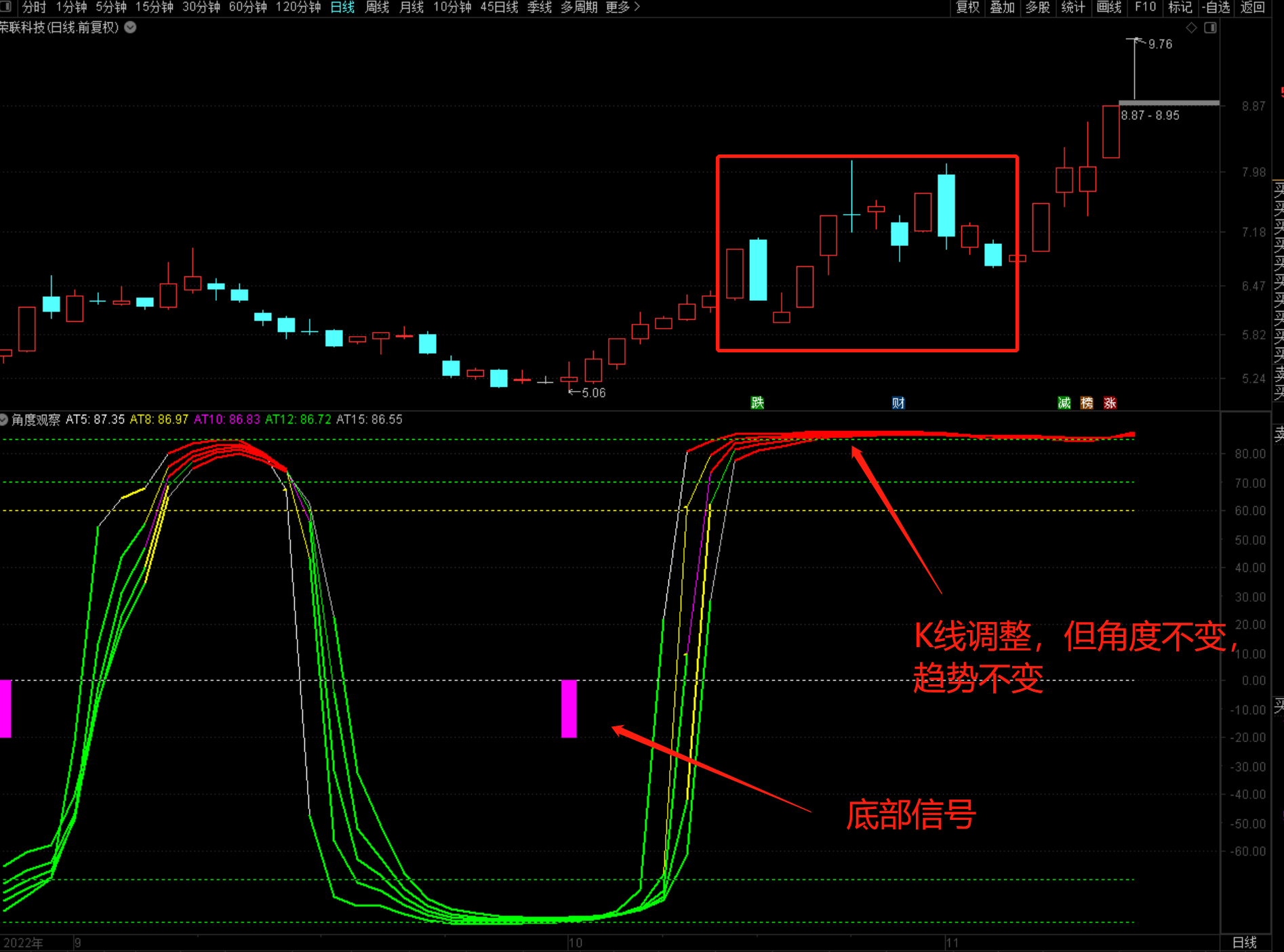 1、因为用的是短期均线信号,使用了角度算法,可以对转折位的变化增加精度,对震荡位的变化精度可能会有所减弱。