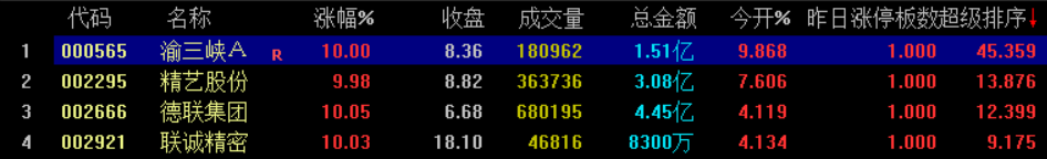 使用说明:(只操作主板)盘后用选股指标选出来,然后把选出来的个股复盘一遍,大概了解个股所属的板块,处在热点板块的可以重点观察,处于板块启动阶段的个股最佳,成为龙头的可能性最大,第二天早上集合竞价9.25分用超级排序指标进行排序,如果排序第一的个股符合 热点板块+开盘涨幅5点以下 可以重点关注 如果个股符合 热点板块+开盘涨幅5点以上 最好打板关注。