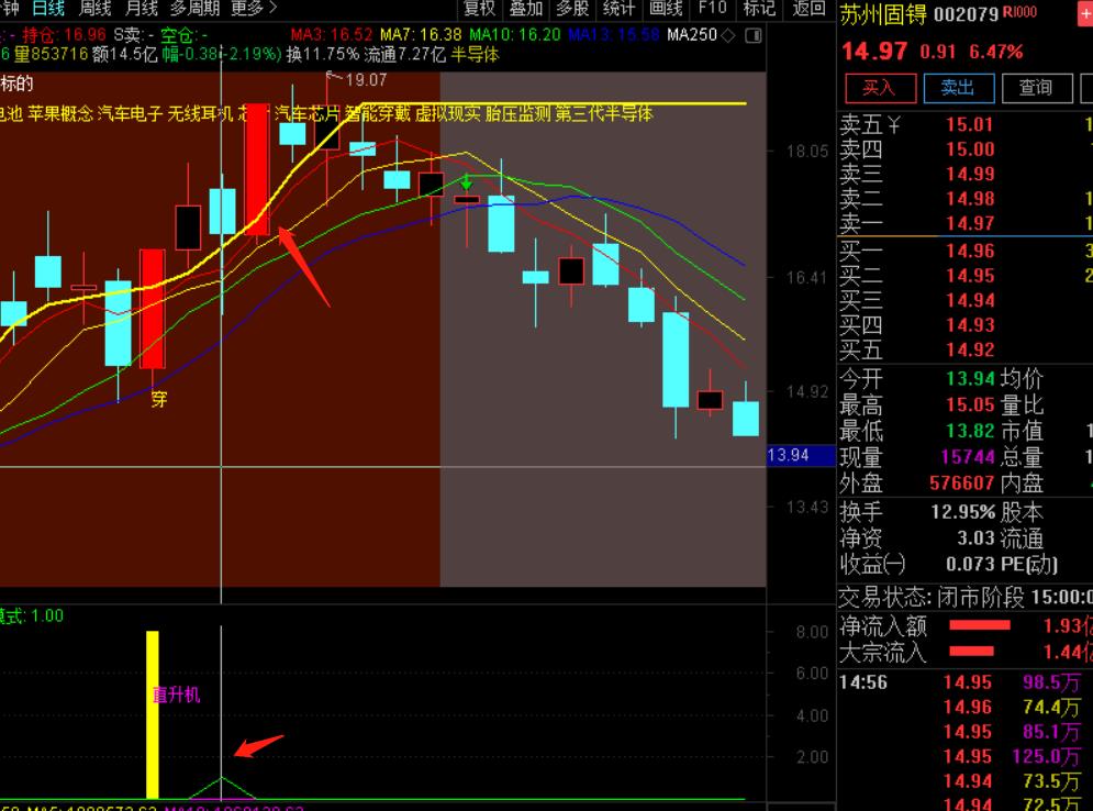 低吸模式:直升机指标出票但未能连板,调整两天继续上冲或者有走趋势迹象的票是低吸模式的对象,用选股公式设置预警,时间为下午2.50-2.55尾盘阶段。