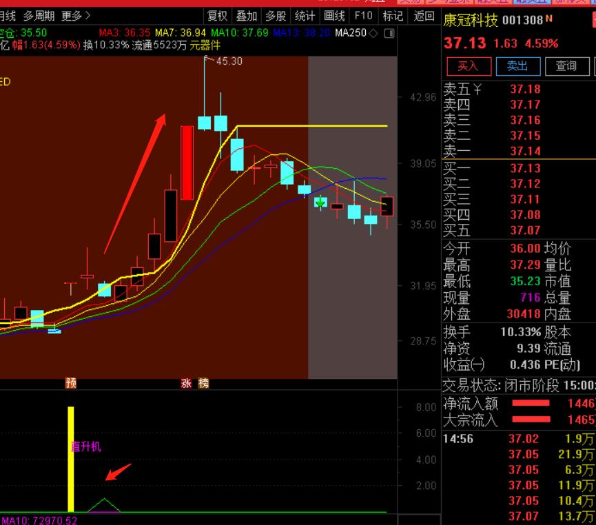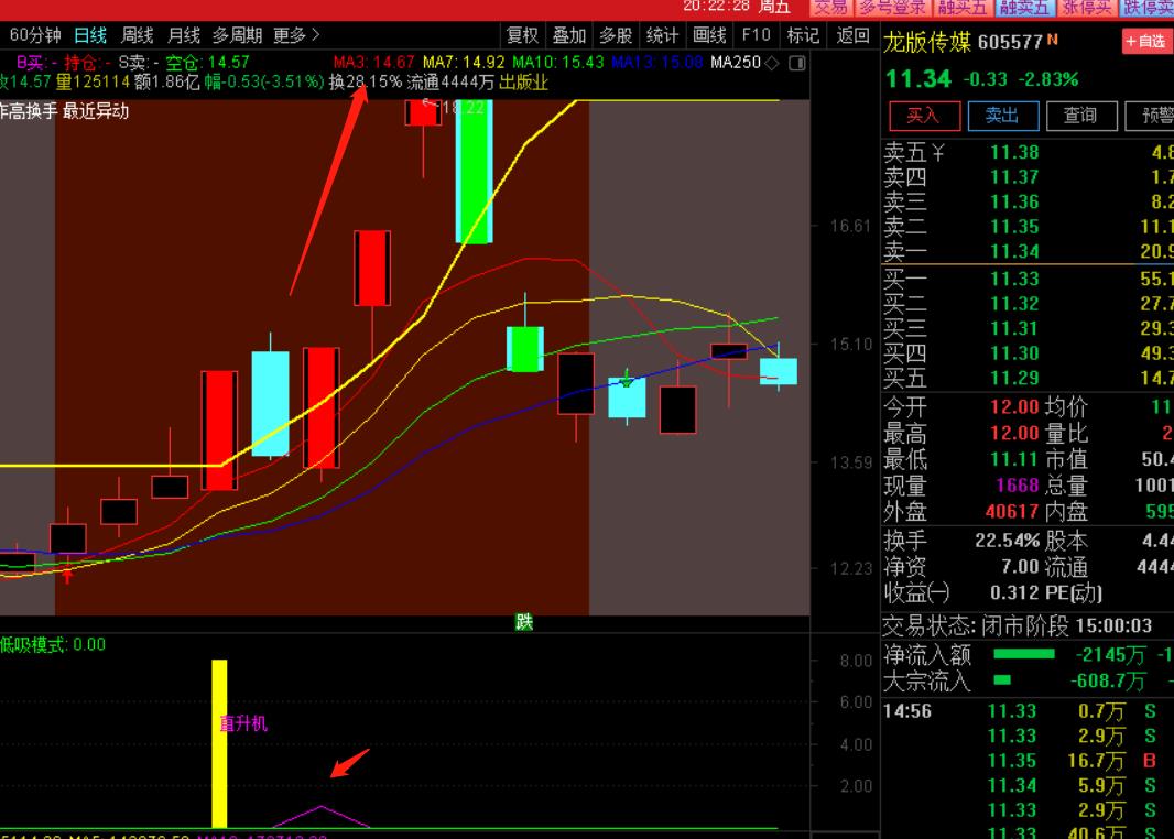 低吸模式:设置止损位-3%,持股日期五天左右,若五天内个股没有冲高或者到达止损位,尽快立场,若冲高,则根据个人情况止盈。