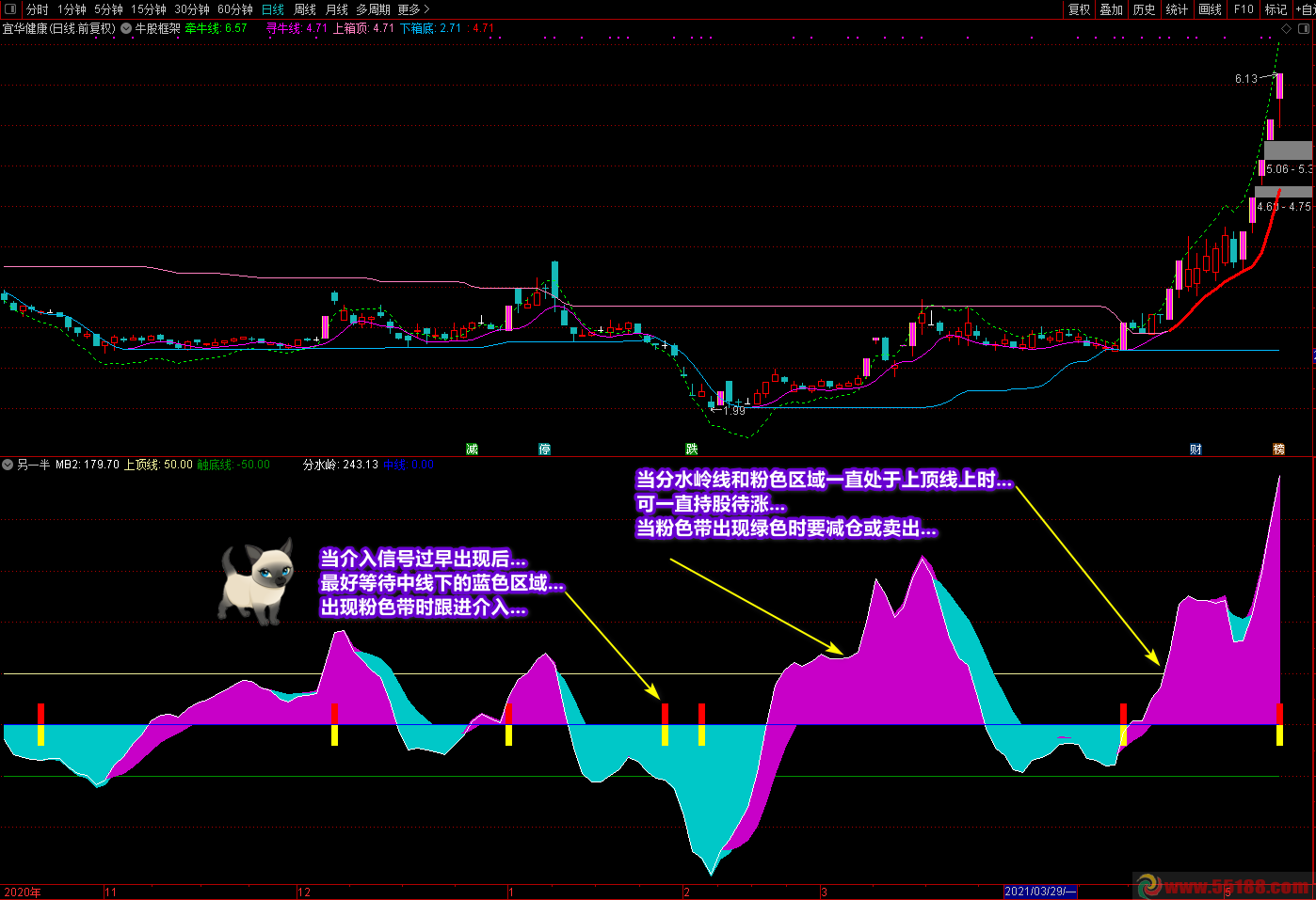 这是一个短线波段操作副图指标,操作简便、鲜明直观,入场信号清晰。操作说明和要领在截图中有详细说明,这里不再赘述。