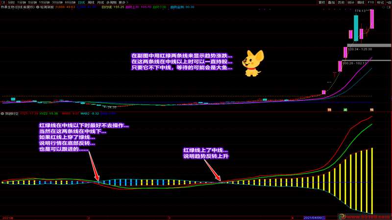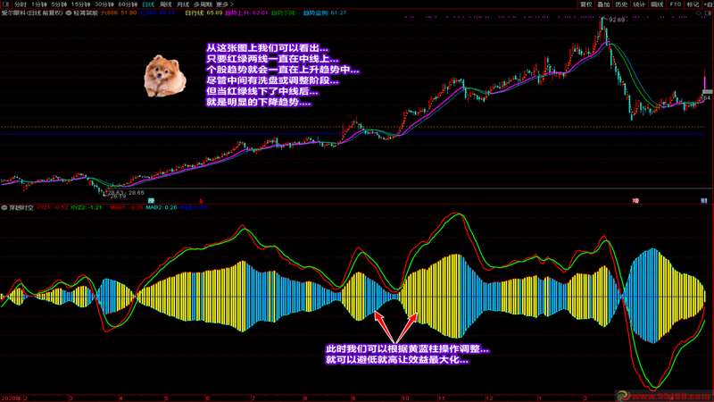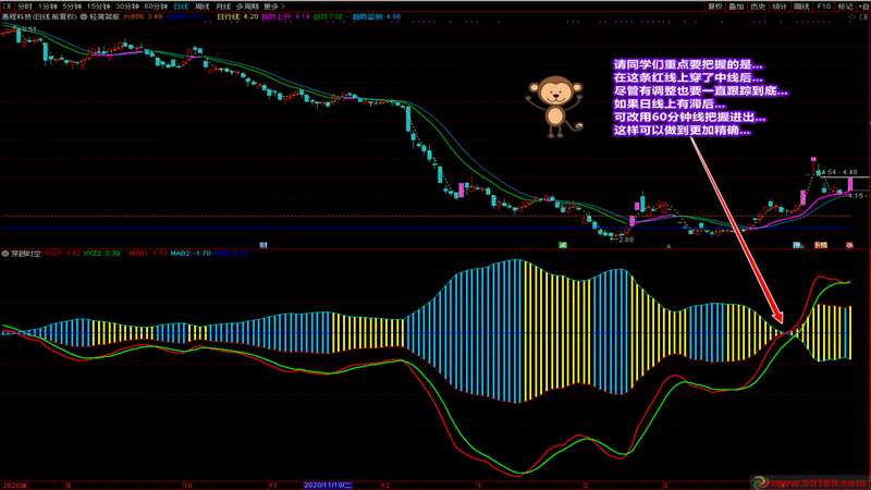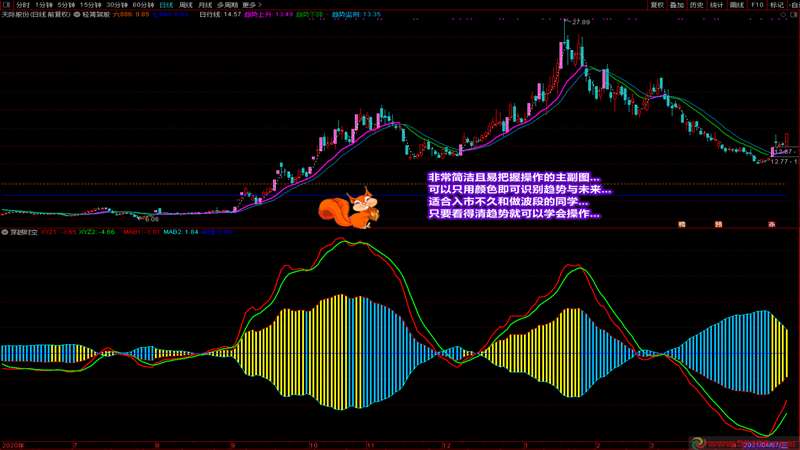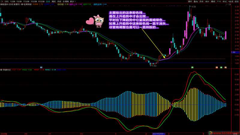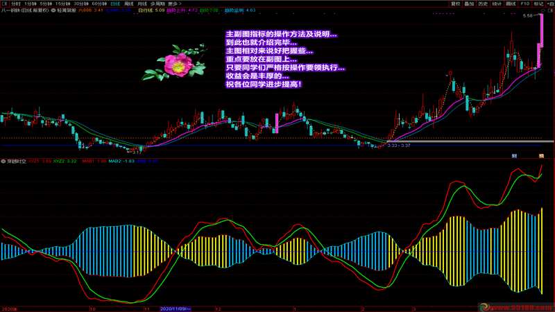 我在医院已经有一段时间没去论坛了,在此感谢在我住院期间问候和关心我的同学们!今天给大家带来的是一套主副图指标。这套指标之所以公布,主要是因为这两个指标都通俗易懂,容易看,容易掌握,好处也好把握。你可以通过主副图的指标出现在阶段区域的颜色信号进行操作,也可以通过主副图中的趋势偏差找到即将大幅上涨的个股。截图中已经详细说明了两个指标的操作要领和说明。拿到指标后,通过对比强势股或日线涨停股的走势和自己的股票,就能清楚知道自己的票处于什么阶段和趋势。为了给大家省钱,这两个指标装在一个附件里,有需要的同学可以一同拿去。写的不容易,赞的留香,谢谢大家的支持和鼓励!