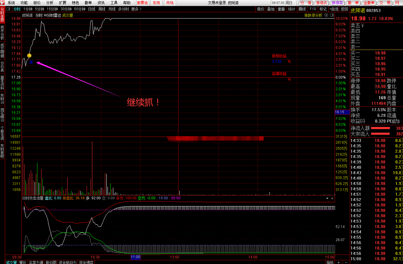 图例展示的分时幅图是"分时攻击量"多空攻击博弈副图抓涨停神器指标,并且提供手机版使用,需要的可以打开下面链接看看