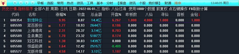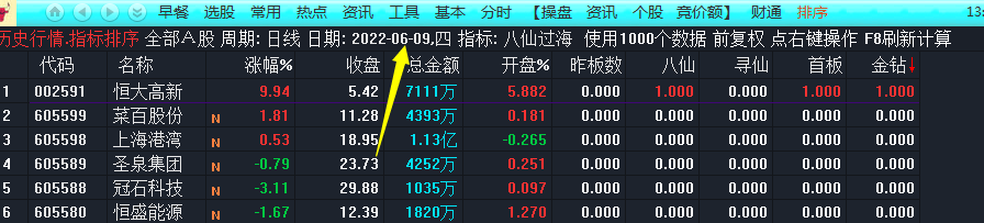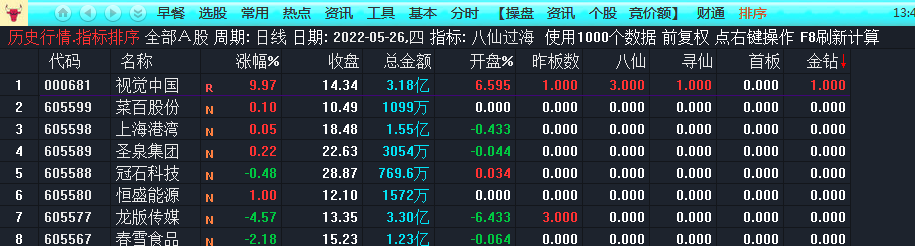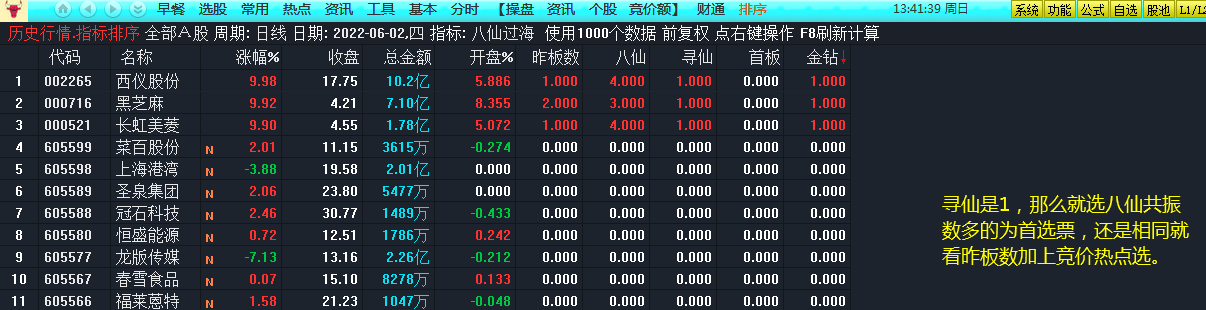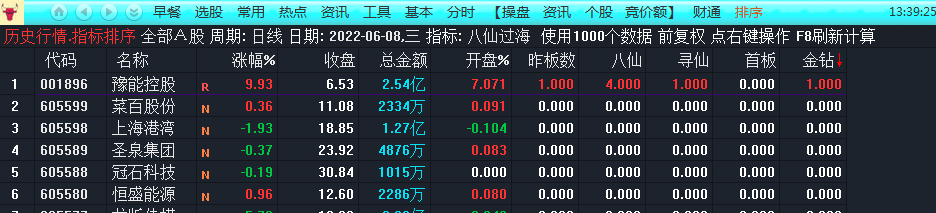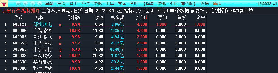 附件指标包含:八仙过海排序、八仙金钻选股,两个指标及源码