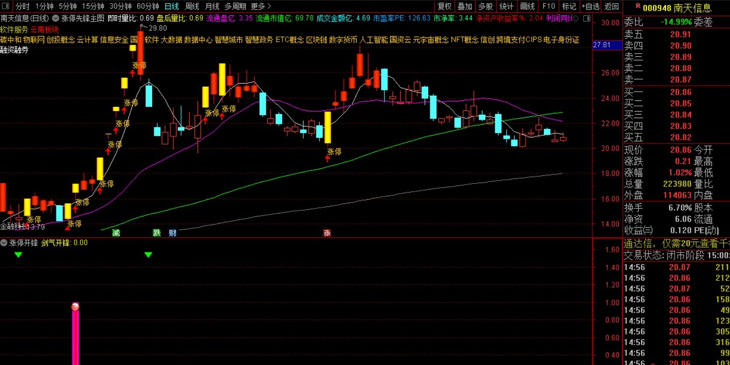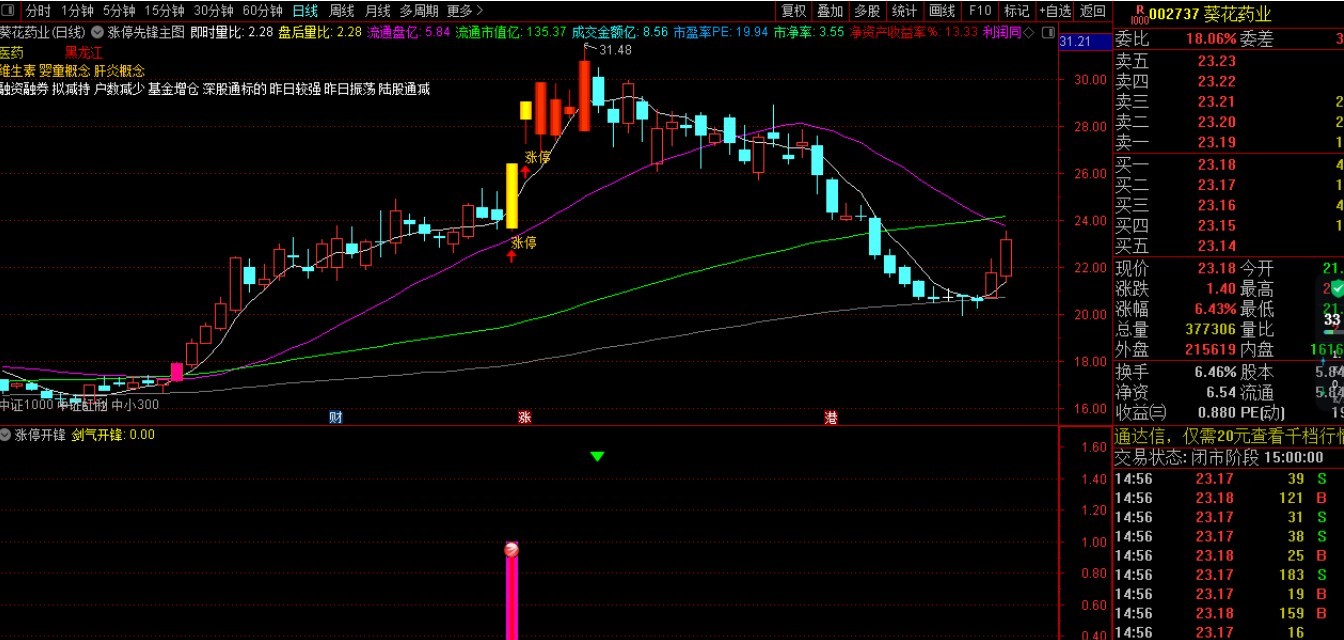 经验之谈:在涨停先锋主图、涨停开锋副图信号出现后,如果股价不涨,可以在它下跌回落、不再创新低后,逢低介入,往往可以捡到大便宜。(庄家试盘后的大便宜。须盯紧资金动向,看资金流入流出)(注:指标不含未来函数,非马后炮)
