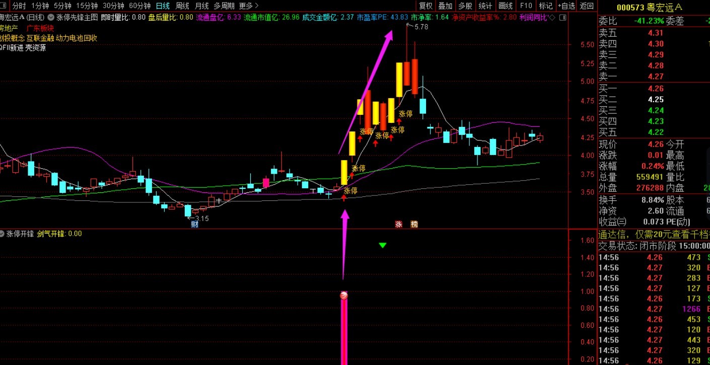 涨停开锋副图:高风险,高利润。博的是大赚小赔。涨停敢死队战法