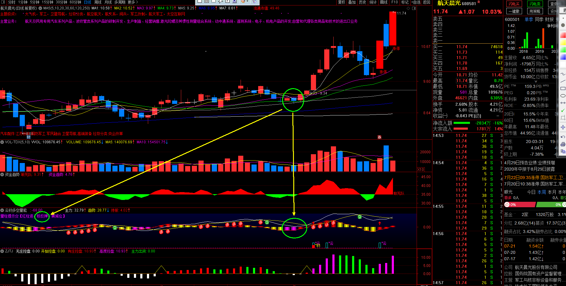 主看盘系统模板包含一主图四个副图,见下方第一张图片。