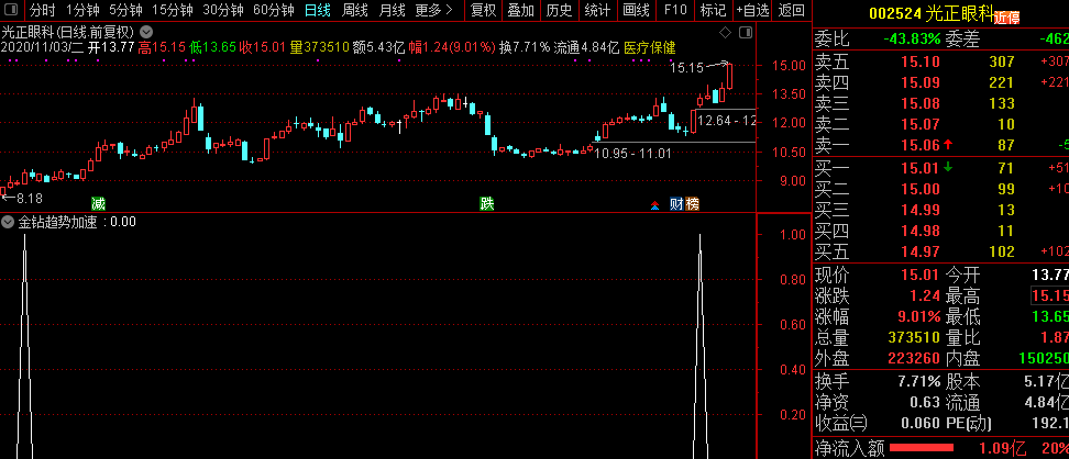 金钻趋势加速指标,为了突破强势平台的信号,可以在信号发出的当天关注逢低,第二天短期盈利出来;