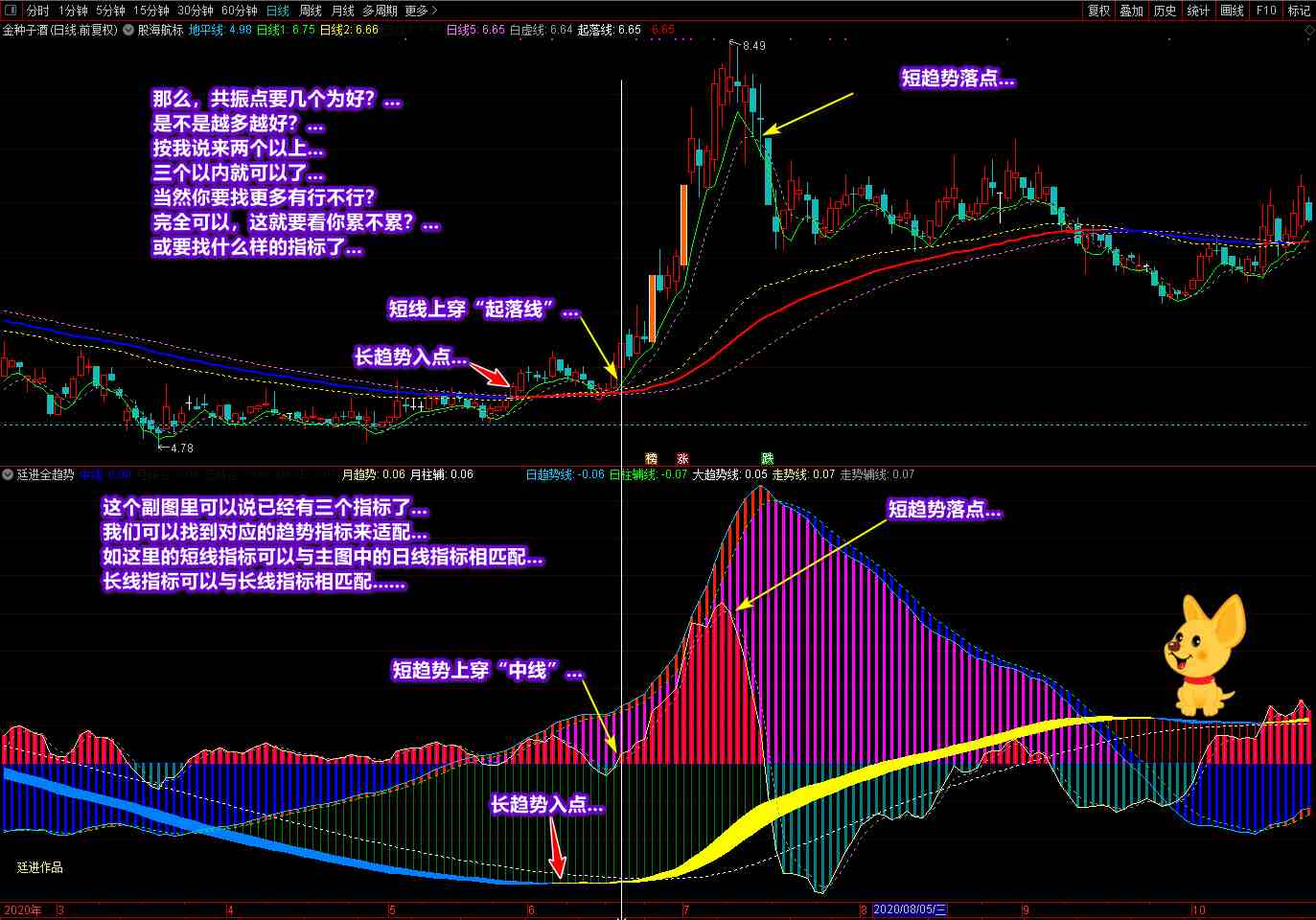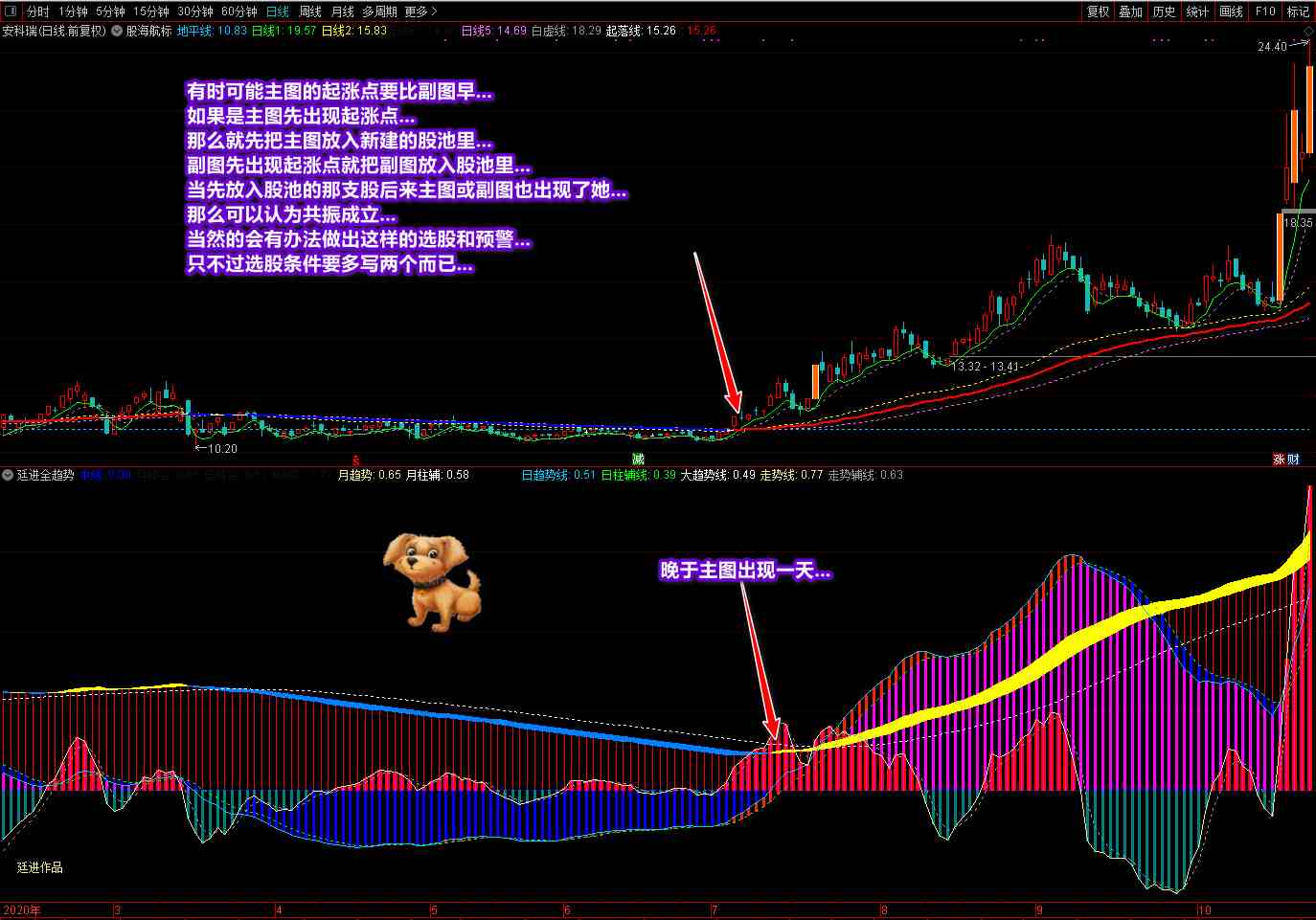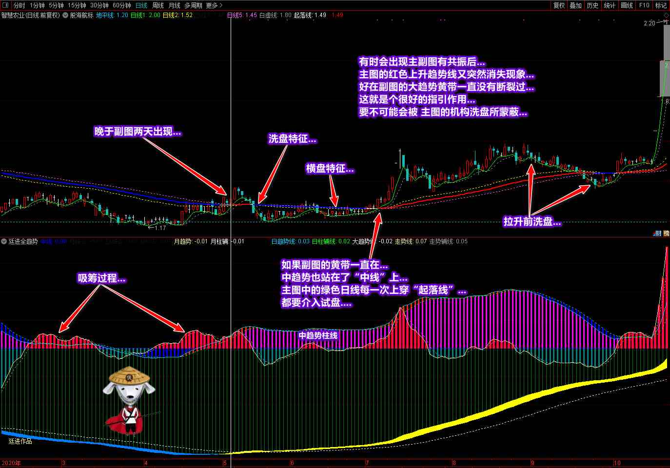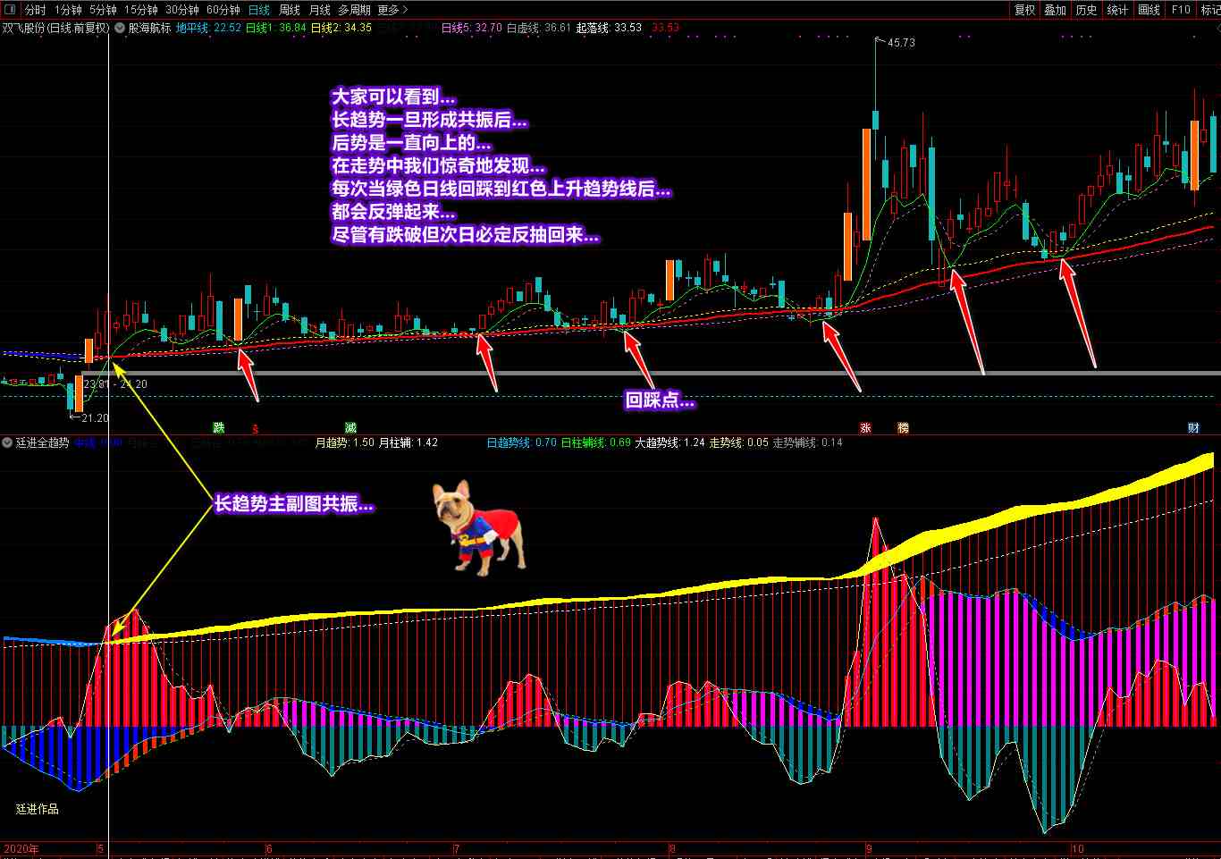 自《廷进全趋势》副图指标发布后,受到了很多学生的喜爱。关键是你看到的趋势能让认购的同学更有信心、更有信心操作自己的股票。而且指标中这种趋势是在所有指标中前所未有的,也是自己经过这么多年实际应该觉得能轻松赢利的一个实用性很强的指标。所以说,《廷进全趋势》副图指标有她独一无二的赚钱效应,是你在所有指标里是难得见到的全趋势指标。尤其她大趋势中的一条关键线是决定输赢的重要参考,用在各个时期都有意想不到的获利效果。 为了使《廷进全趋势》指标在应用过程中更加保险实用,也是应同学的要求,近期编写了这个《股海航标》主图指标,旨在与《廷进全趋势》副图指标在时间和周期上产生“共振”,这样对上升趋势是否真正成立加上了保险,也可以使大家在操作过程中更加做到心中有数。 在这里,有必要和学生们谈谈指标中的“共振”作用。当长期投资者、中期投资者和短期投资者在同一时间点同向买入或卖出时,会出现向上或向下的共振。当时间周期中的长周期、中周期和短周期在同一时间点相遇,方向相同时,就会出现向上或向下共振的时间点。当长期移动平均线、中期移动平均线和短期移动平均线在同一个价位以相同的方面相遇时,就会出现一个向上或向下共振的价位。当k线系统、均线系统等各种技术指标发出买入或卖出信号时,就会产生技术分析指标的共振点。当指数“共振”点出现时,可以准确建立趋势和方向,也可以加入系统方向的建立。那么,共振的指标越多越好吗?在我看来,两三个就够了。更多的指标会影响和干扰你的操作心理,失去一件事得不偿失。 可能有些同学看到“股海航标”的指标后会认为,这只是把副图的指标移到主图使用!会写指标的人应该知道,这两个图是完全不一样的。副图是零位坐标图,而这个《股海航标》主图是价位坐标图,两者是完全不一样的坐标。所以,副图的《廷进全趋势》指标是不能单独放到主图上使用的。所有主图指标可以放到副图里单独使用,但一般的副图指标是不能单独放入主图里使用的,这一点,请大家一定要明白也可以去验证。 主图指标的使用方法和操作要领都在截图中作了详细说明,操作使用前请下载截图说明。这里就不重复了。也请同学们下载,经常回帖子看看其他同学的经验和我后面补充的其他补充内容,可以提高你的操作技能。这些年来,发布了很多帖子。可以说,每一篇帖子都像是“视频教科书”。许多学生,包括一些刚来学习但从未订阅的学生,都跟着去了。我们很高兴能相互学习并从中受益。在此,我们也要向这些学生表示感谢! 指标因是开放源码,同学们可以用“未来函数检测”工具进行检测,所以保证不含有任何未来函数。还是强调那句老话;指标为可复制品,一旦订阅概不退订。所以请同学们务必看清说明以后再订阅不迟。闲话不说多,请仔细看看截图,祝大家进步! |