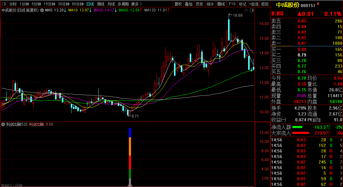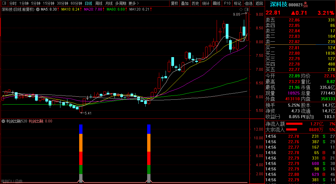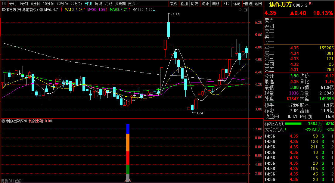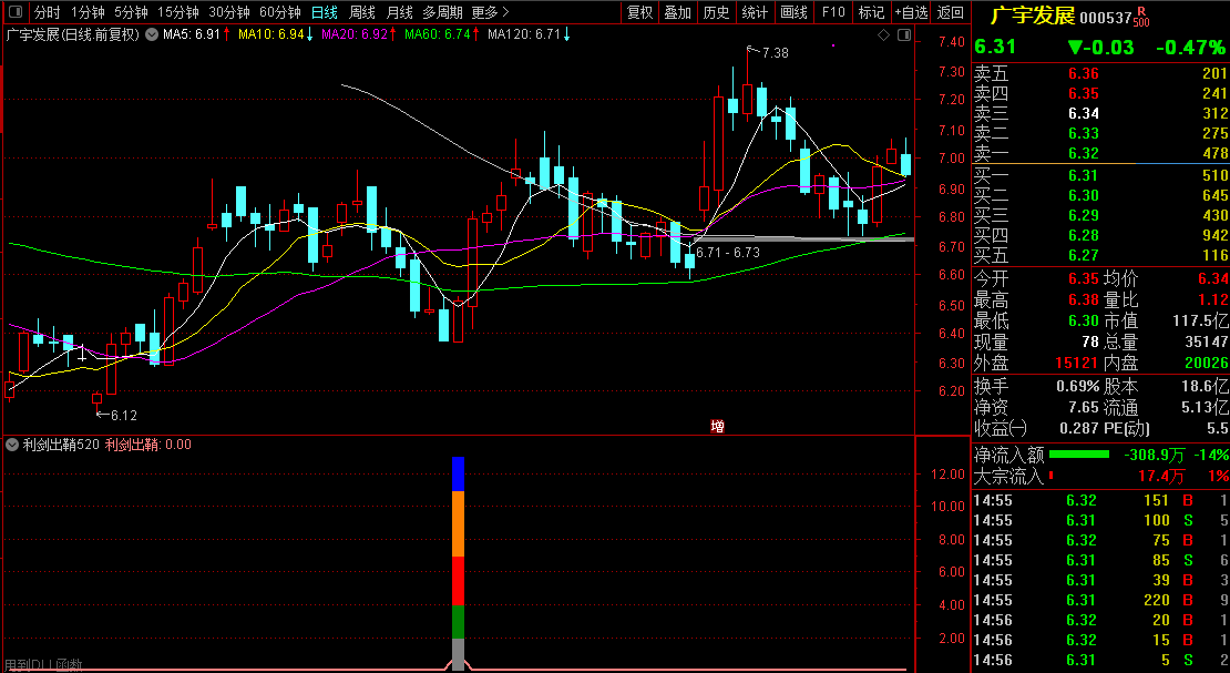 大家一直在寻找一些好的指标和选股方法来应对不断变化的股市。指标综合了上述诸多理论和实践因素,通过技术分析和条件,以及历史大数据的统计,以高概率做出参考和辅助(这里讨论的是无未来函数的指标)。一个好的指标,当然要不含未来函数,可以提高选股效率,缩小选股范畴,能选出牛股,从而成为股票交易中有效的辅助和参考工具。它可以快速提高选股和交易的效率。写出有效优秀的辅助指标也是楼主追求的目标。通过多年编制指标的实践和经验,编制指标的能力正在逐步提高。此外,论坛中很多老师和童鞋也提供了很多好的建议和很好的写作指导。在这里谢谢你。经过长时间的撰写和测试,下面发布一款新的持股三天短线【利剑出鞘520】指标给大家,为大家提供更多的参考机会。