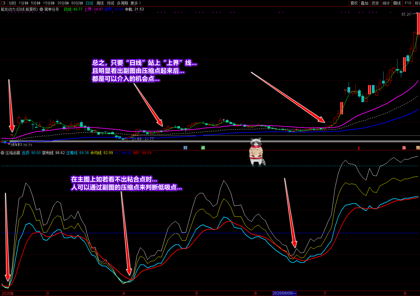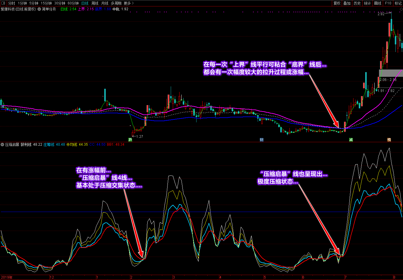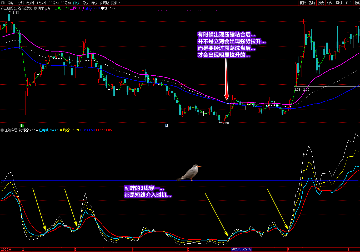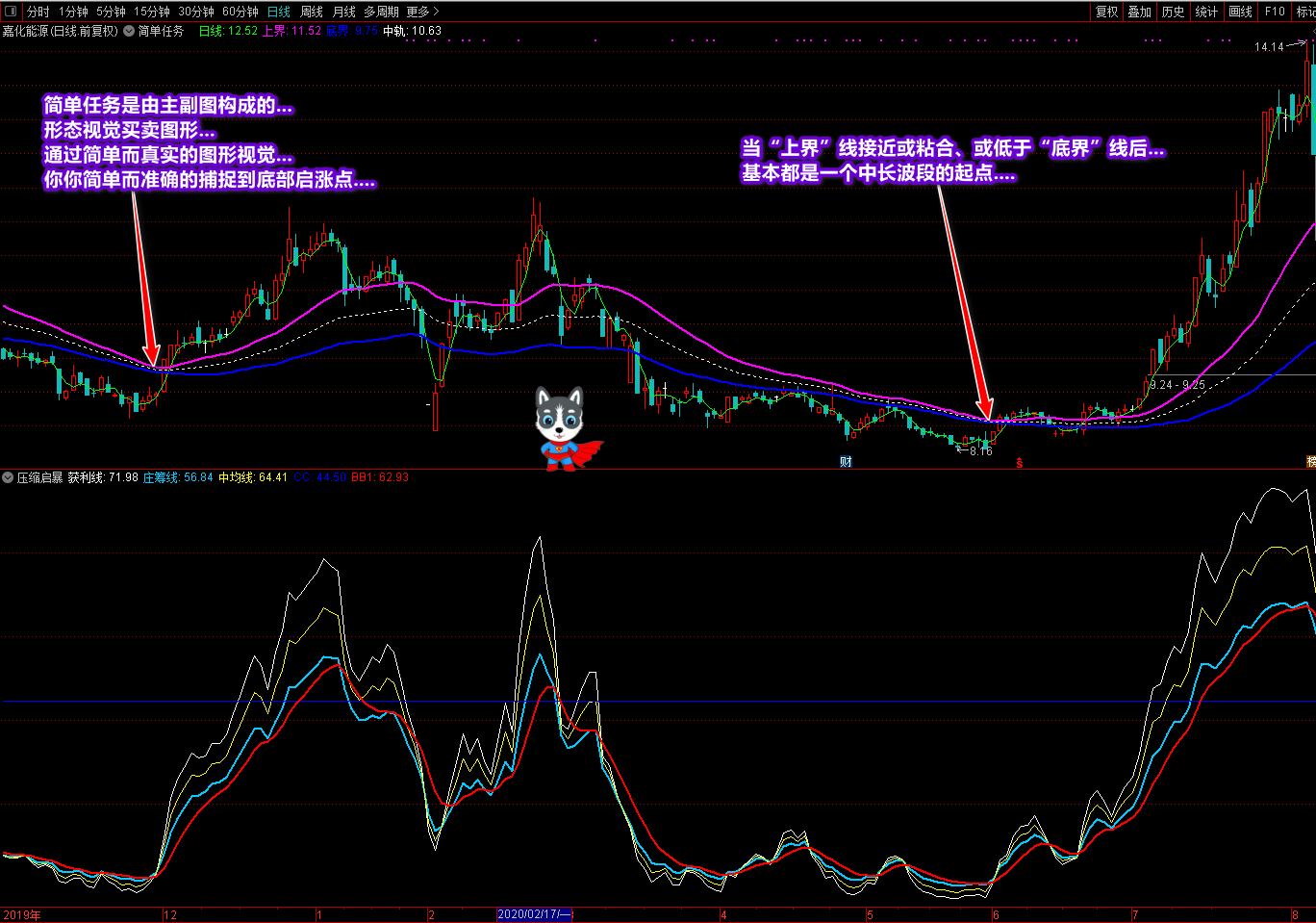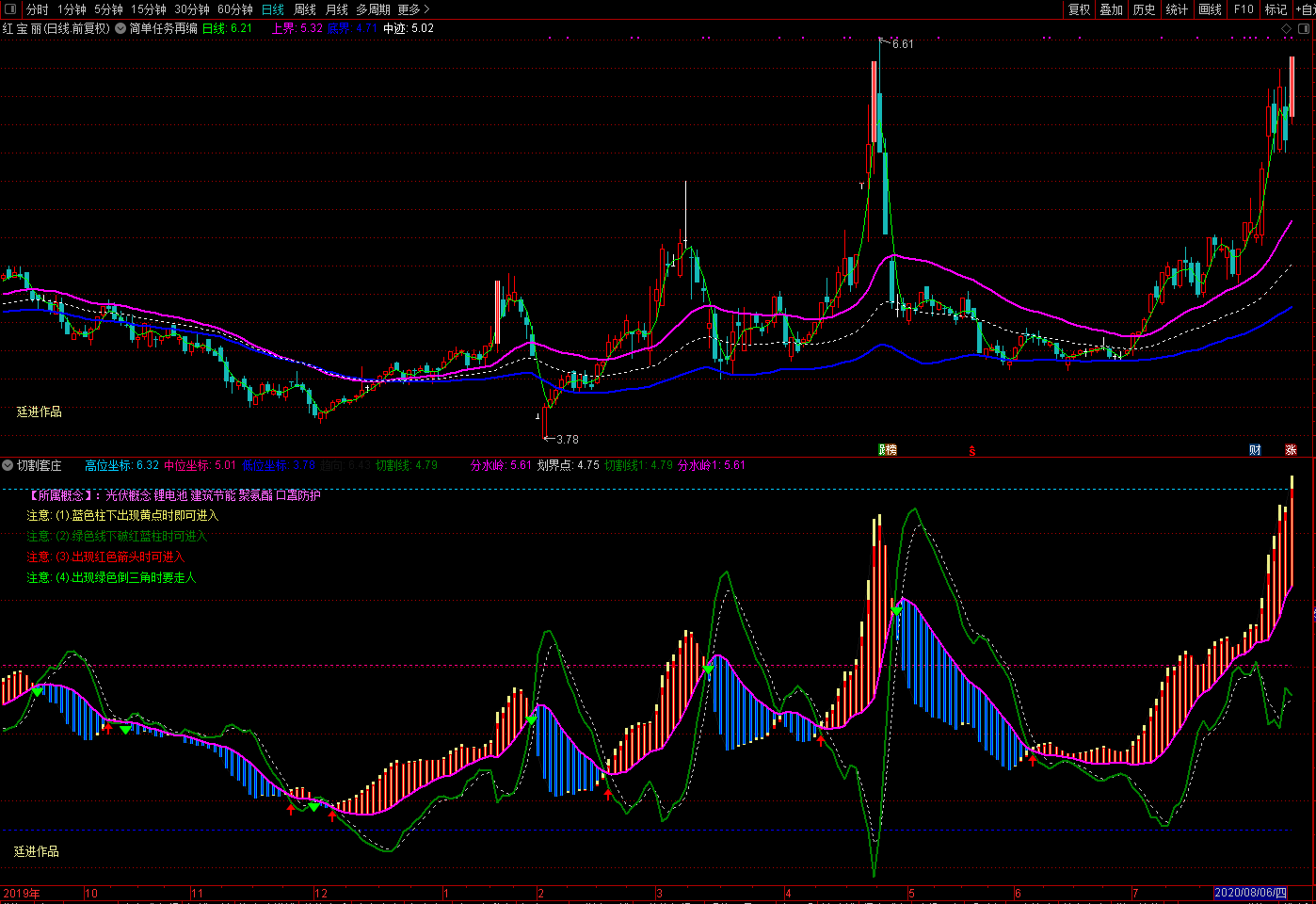 《简单任务》主图和《压缩启暴》副图是重点看趋势的技术指标。通过这两个指标,基本上可以在低点买入,高点卖出,利益最大化。这套指标也是针对一些亏损的投资者,他们总是找不到趋势低点,无法把握交易点。虽然我们找不到每只股票的所有上涨点,但是股票市场的股票太多了,找几只来操作会有利可图。做事不要贪心,尤其是炒股。那些原本有利可图的人后来因为太贪心而亏损。只要你能按照这套指标在一段时间内操作一两只股票,盈利就不是问题。