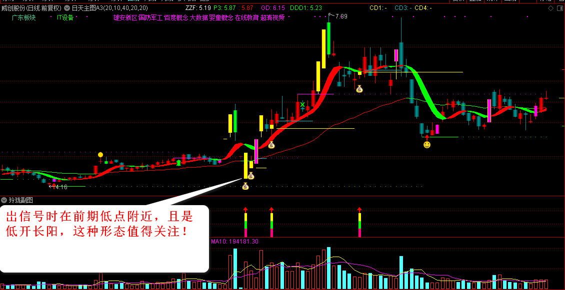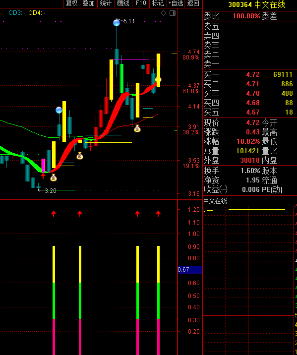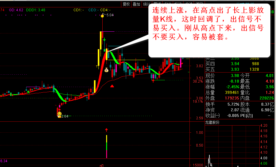 | 【玲珑涨停回马枪】:玲珑二号,涨停板回调后买入! 说明: 一:降低了预警点位,公式中设的是比昨天涨一个多点即可出预警。(由于盘中交易或网速等快速提升,点位会稍高一点!) 因为玲珑一号是三个点预警的,这个二号降低了预警点位,不到两个点就可预警,给人留有思考的时间去判断! 二:在原来玲珑一号预警公式的基础上,增加了玲珑一号无法选择的几种形态组合,出票比以前多了,对于常期研究涨停板的人来说,选择机会也多几个。 三:它可盘中预警,也可以在盘后选股。如果有些票当天涨幅不大,符合购买条件,也可以在收盘前购买! 四:箱子内有主图、玲珑预警和副图。原来的玲珑一号还在里面,仍可继续使用! 玲珑二号基 本包含了一号的票!二者共用一个副图,名字是“玲珑二号”副图!副图导入后在“日天股票指标”里可找见! 予警公式和选股公式一样,直接把选股公式设为予警公式即可! 五:信号有无以收盘价为准! 六:用法说明:玲珑二号和玲珑一号用法一样!详细说明如下: 1::首先看票的位置,位置越低、且离前方套牢盘筹码区越远,相对较好一些,这样的票有上涨空间,反弹力度越大!(那些有警示的、连续跌停有问题的票不 买、有退示风险的票不买)! 2:股价经过长期下跌后,出了第一个涨停板,这时回调后,且回调不破板,如果给出信号,介入比较好! 3:股价在相对低位,出头一个板后,双阴洗盘或三阴洗盘后,且回调不破板,出信号,介入较好! 4:那些业绩良好,符合近期热点,是当前主力炒作的对象,出信号后,介入较好! 5:短线注意快进快出。如果位置稍微高一点,有些票第二天冲的时候就能卖出去!有些票在相对低位可以持有几天,小阴小阳震荡,但是如果跌破你的止损点!你应该先止损! 6:判断好了,出予警时也可介入,有盈利可以随时卖掉。如缓慢上涨也可继续持有! 指标只是缩小选股范围、节约时间、提高效率。岀信号时能买不能买,自已要有判断,自已把握。要先看股票的形态!详见“用法说明!”不管哪一种形态, 符合条件买入不涨,该止损的,就应先止损! 七:哪些票不易买入! 1:首先,最好不要买那些有风险警示、有问题,有退示风险的票,最好不买,防止“踩雷”!另外,那些连年亏损的票,到了披露年报时,有可能会被“ST”,一旦被 “ST”后,往往会连续跌停,!所以,这些票最好不买! 2:前期涨幅较大的票要注意!有些票已到了阶段高点,出涨停后即便回调,也不要急于介入!这时回调后再拉升,往往是诱多出货!尽管有些妖股, 看起来非常诱 人,但你已错过了入场时机,不要去追了!这样的票肯定是少数! 3:连续拉升的票在回调开始时不容易介入。比如有些票连续被三四个日涨停板拉起。虽然有小幅回调,但并不容易买入,因为短期涨幅过大,仍有下跌空间! 4:日线涨停时,到达之前的高点,然后在高点附近横盘,不易买入!高位放量横盘不涨,往往会下跌! 5:尾盘或最后一两分钟内拉升的票,出信后最好不要买入,这种票往往第二天会低开! 6:如果介入后当天涨停了,但中间涨停反复被打开后又封住,或涨停被打开后没封住,第二天要及时卖出! 7:对于部分次新股,由于开板时涨幅太大,随时有再回调的可能,出信号时不易买入! 8:对于一些有吸引力的票,我们错过了当时的购买机会,但现在我们处于更高的位置,但我们忍不住想追上去。一定要轻买,及时止损,僻勉被套。但最好不追高位票。 9:结合市场环境,环境不好的时候尽量少参与或者轻仓买入,控制仓位! ![]() 补充内容 (2020-5-17 22:17): 怎样导入公式:以通达信为例: 1:在菜单上点“功能”,点“公式系统”,点“公式管理器”,点“导入公式”,找到刚才解压过的文件,点击它,打开,再点确定,就可导入了! 2:用的时候,如果是主图,在主图界面点“主图指标”,点“选择主图指标”,选中刚才导入的主图就行了! 如果是副图,在副图上点右键,点副图指标,“选择副图指标”!找到刚才导入的副图就行了! 补充内容 (2020-5-17 22:17): 怎样设置予警? 以通达信为例 一:在主图菜单上, 点功能——予警系统——条件予警设置―――予警公式设置——添加公式,把要予警的公式选上,点确定! 二:在菜单上点功能——予警系统——条件予警设置——予警公式设置,再点添加品种 ,选“沪深A股”,全选后,点确定! 用前首选要下载完整日线数据,否则选不到或预警不到!!在系统“盘后数据下载”,做股票的要下“沪深日线”! |