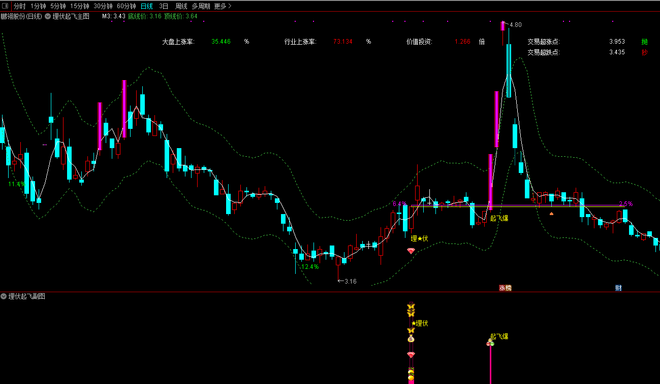 以当前的做空市场而言 ,散户朋友们选股是件比较困难的事了 ,一个好指标工具此时对我们而言就是一件利器了从3600多支个股里挑出几支 强势 潜伏启动 爆发主浪符合主力拉伸票缩短选股繁锁的过程经常看到朋友们买了不该买的票忍痛割肉赚小的亏损大的,亏损的钱都可以购买好几十个指标费用所以必要的指标工具还是要具备的对选股是很有帮助的,盲目选股操作反而会错失更多机会。