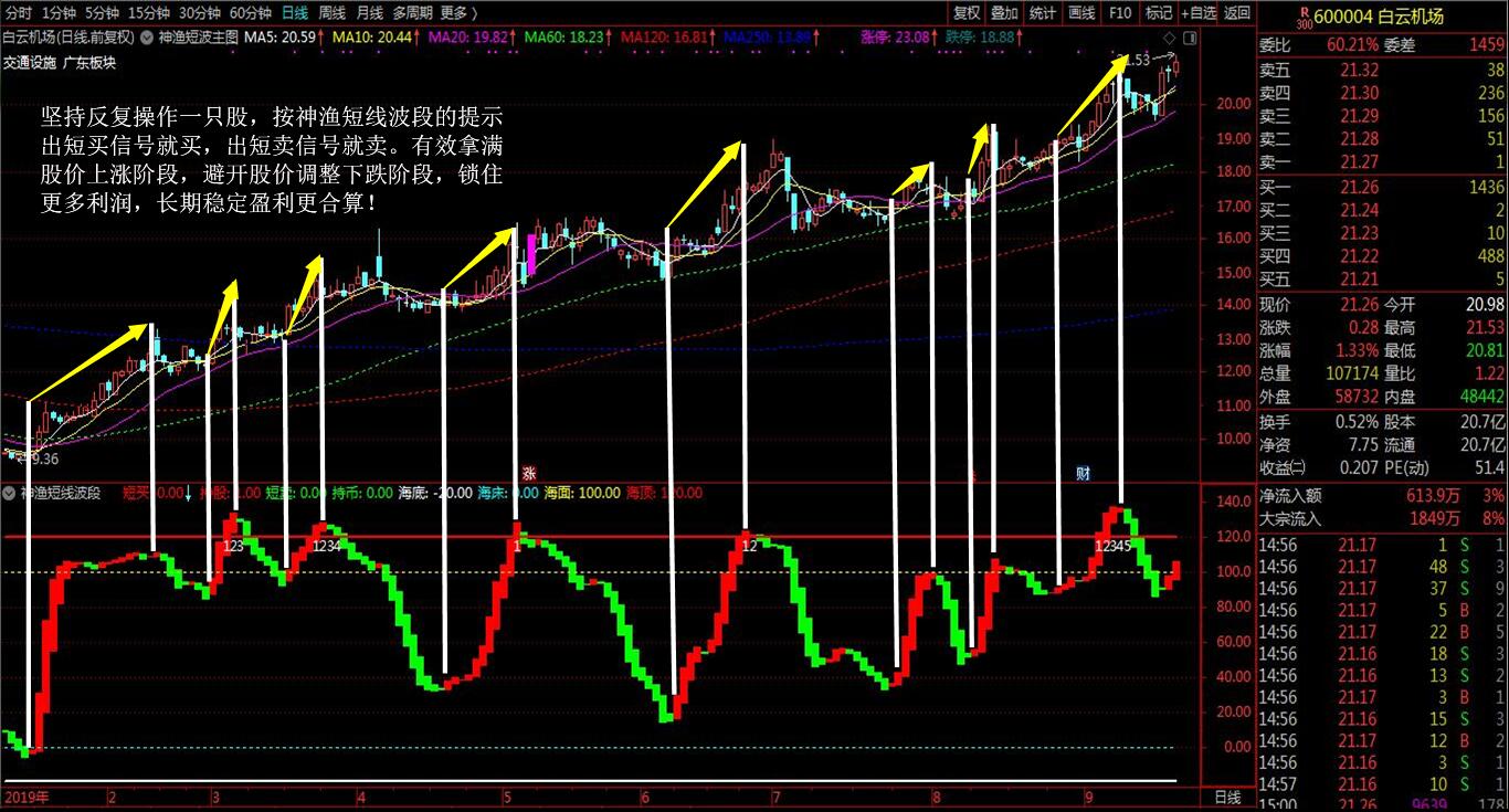 坚持反复操作一只股,按【神渔短线波段】的提示:出短买信号就买,出短卖信号就卖。有效拿满股价上涨阶段,避开股价调整下跌阶段,锁住更多利润,滚动操作,长期稳定盈利更合算!