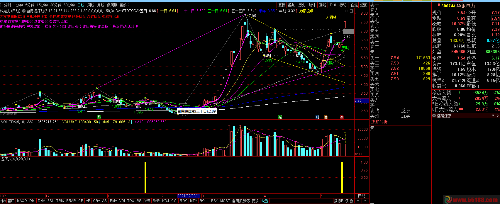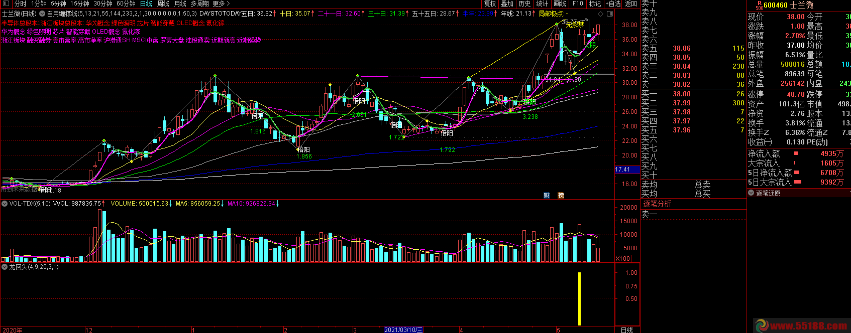 龙回头选股公式(该指标配合上主力资金指标,经常能捕捉到涨停板,成功率非常高,强烈推荐):