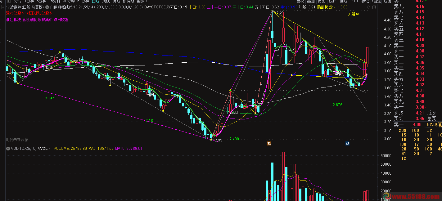 3、盘面观察,要观察量比、换手率、涨速这几个指标。如果开盘的半个小时内,量比在7、8至15、18之间,是大有机会的,但是如果上一天是涨停、跌停,或者是大阳、大阴兼成交量突然变大,那么这个量比就要结合其它看,因为如果上一天涨停,第二天出货歌者盘整的话量比也是很大的。另外,有的股开盘盘整,后面发力涨停的,这个可以通过观察涨速、量比的变化来抓取得。