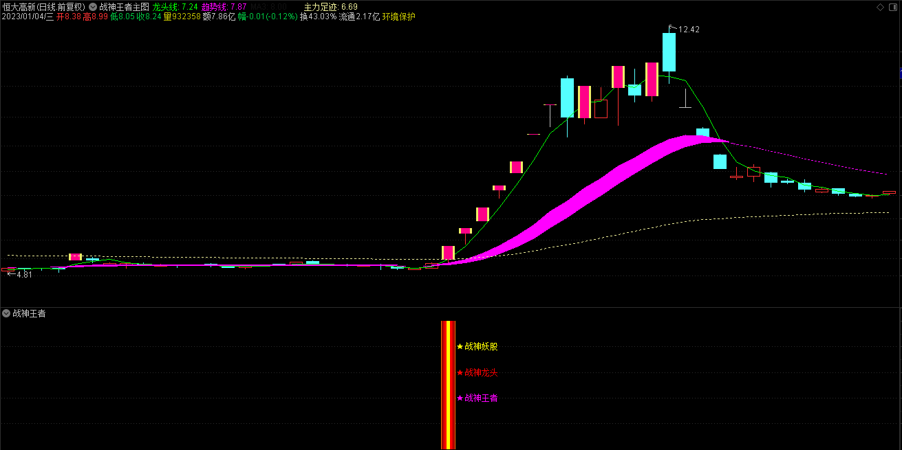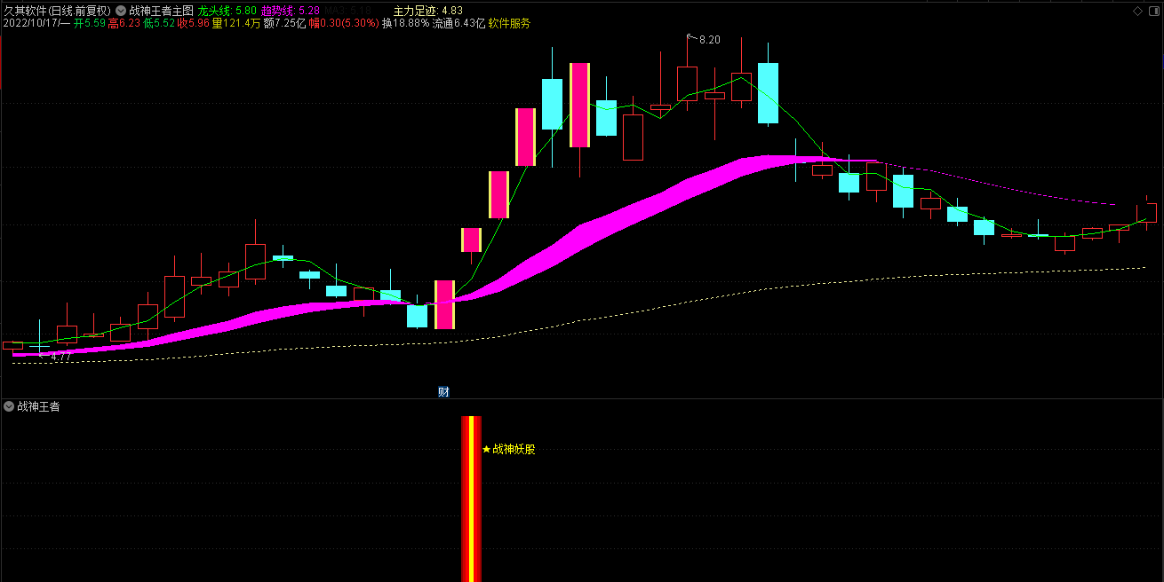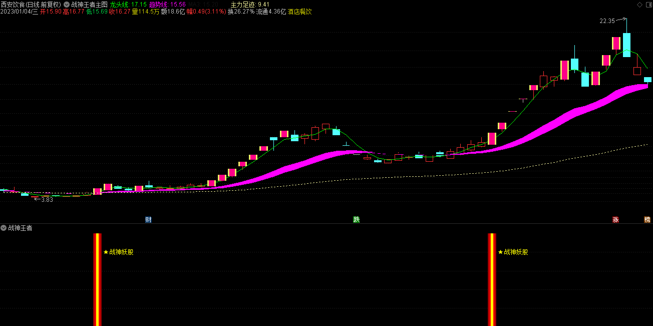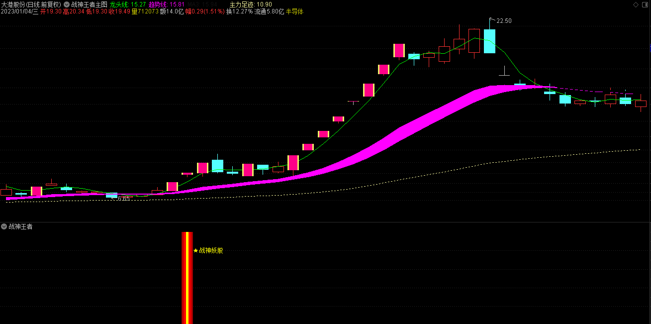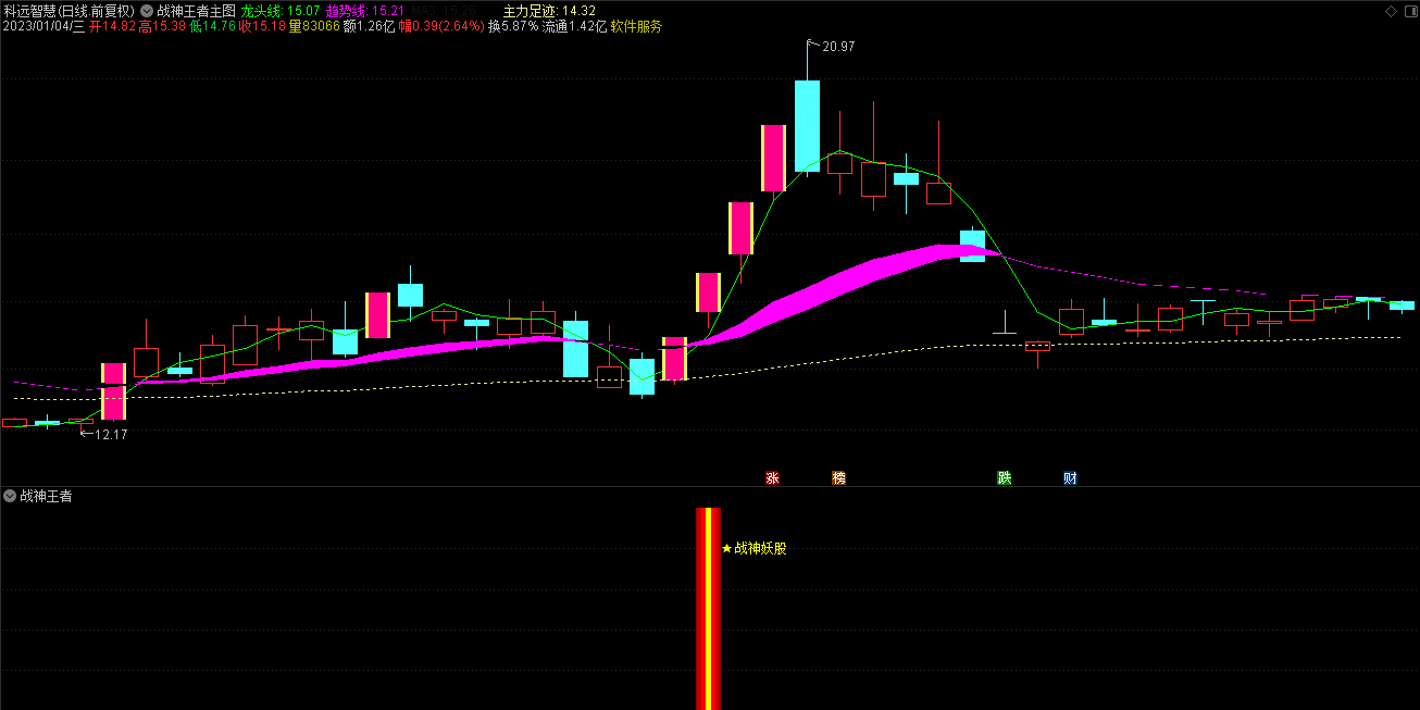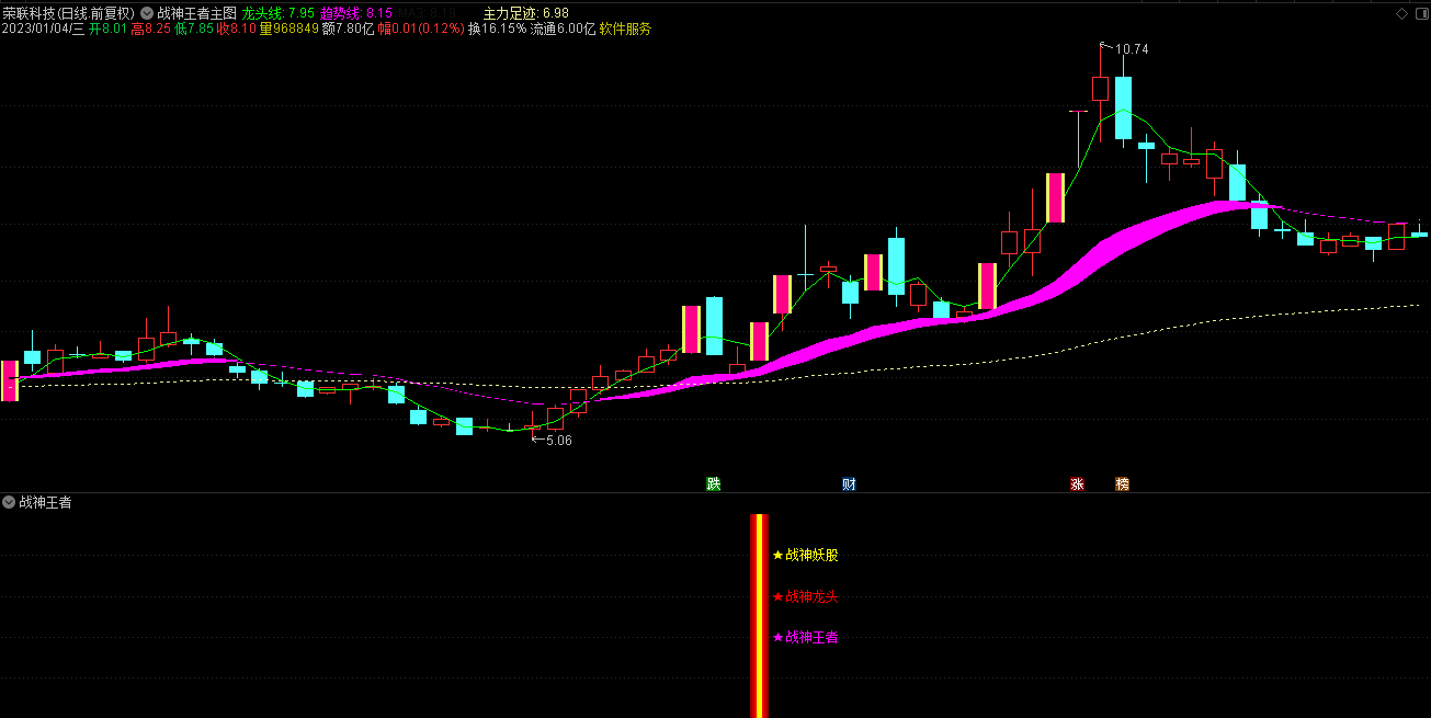 通达信2023战神王者三合一指标是一套战神系列会员版的最新指标,指标集合了战神龙头、妖股、王者三合一信号,适用于短中线操作者,实测战神王者三合一全套指标无未来函数,有一个主图、一个副图和三个选股公式组成,无使用时间限制,由于指标使用了Week,和Mouth 周期函数暂不支持手机版使用。