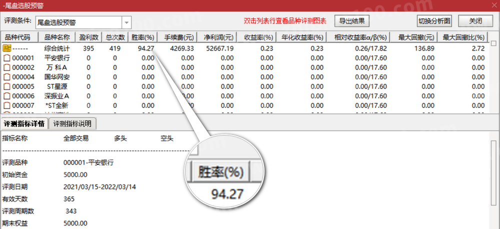 1、将尾盘预警选股设置为条件预警,时间设置为2.50-3.00,尾盘若有预警提示,观察预警出来的票副图信号会不会消失。