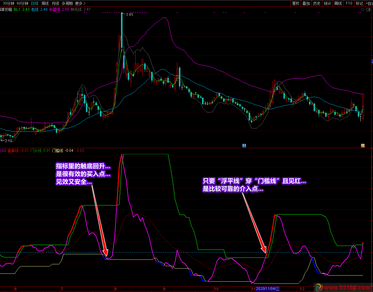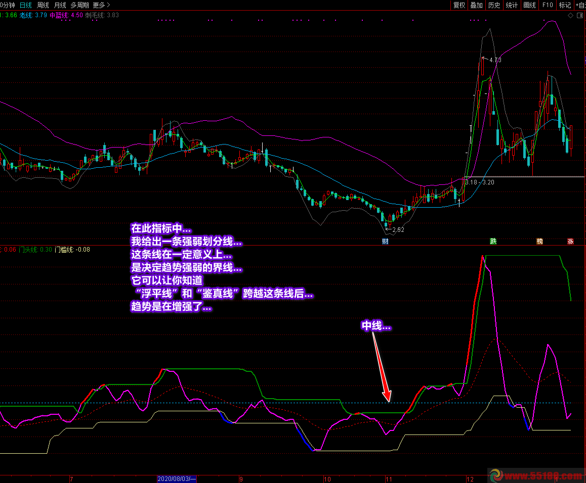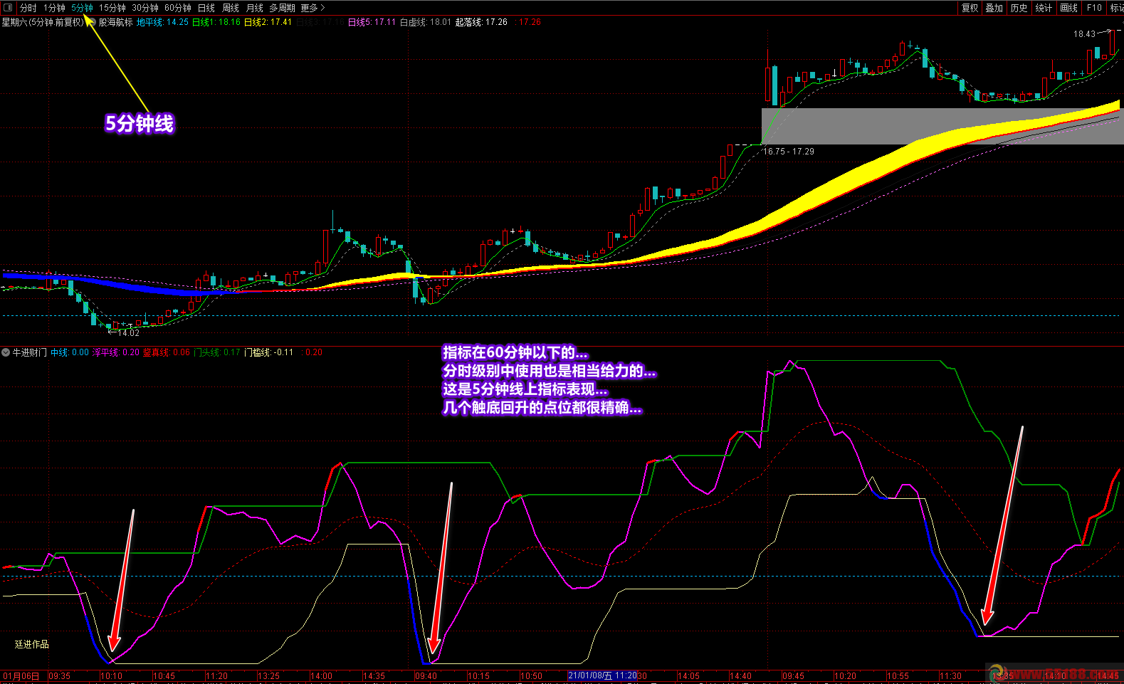 截图说明中已经说明了指标的思路和创作原则,截图说明中也详细标注了使用方法和操作要领。希望同学们拿到指标后,仔细揣摩指标的使用方法和操作流程。在他们完全了解操作要领之前,还需要多观察几次模拟操作,不要轻举妄动,等你掌握了操作方法再实际操作,这样你在实战中才能更有信心。