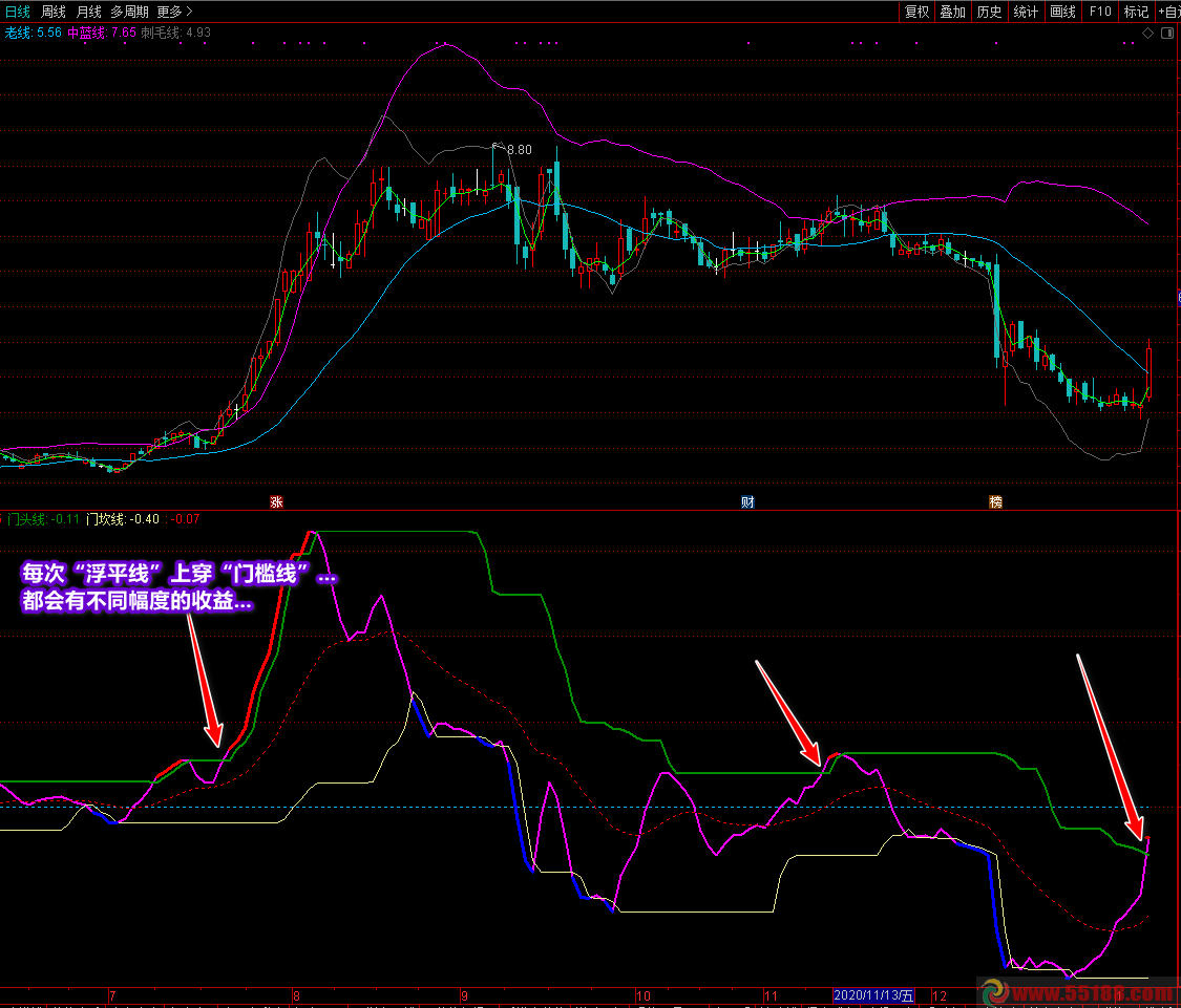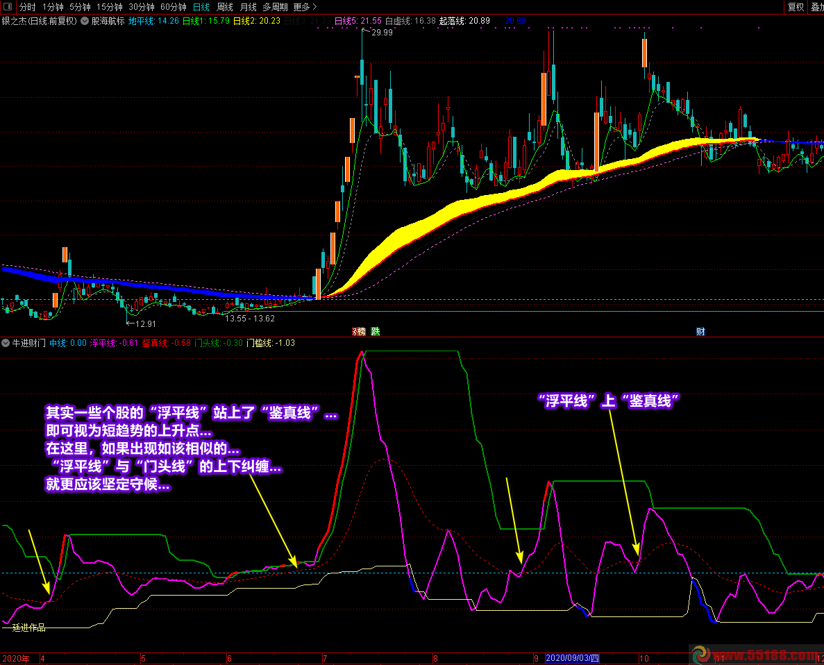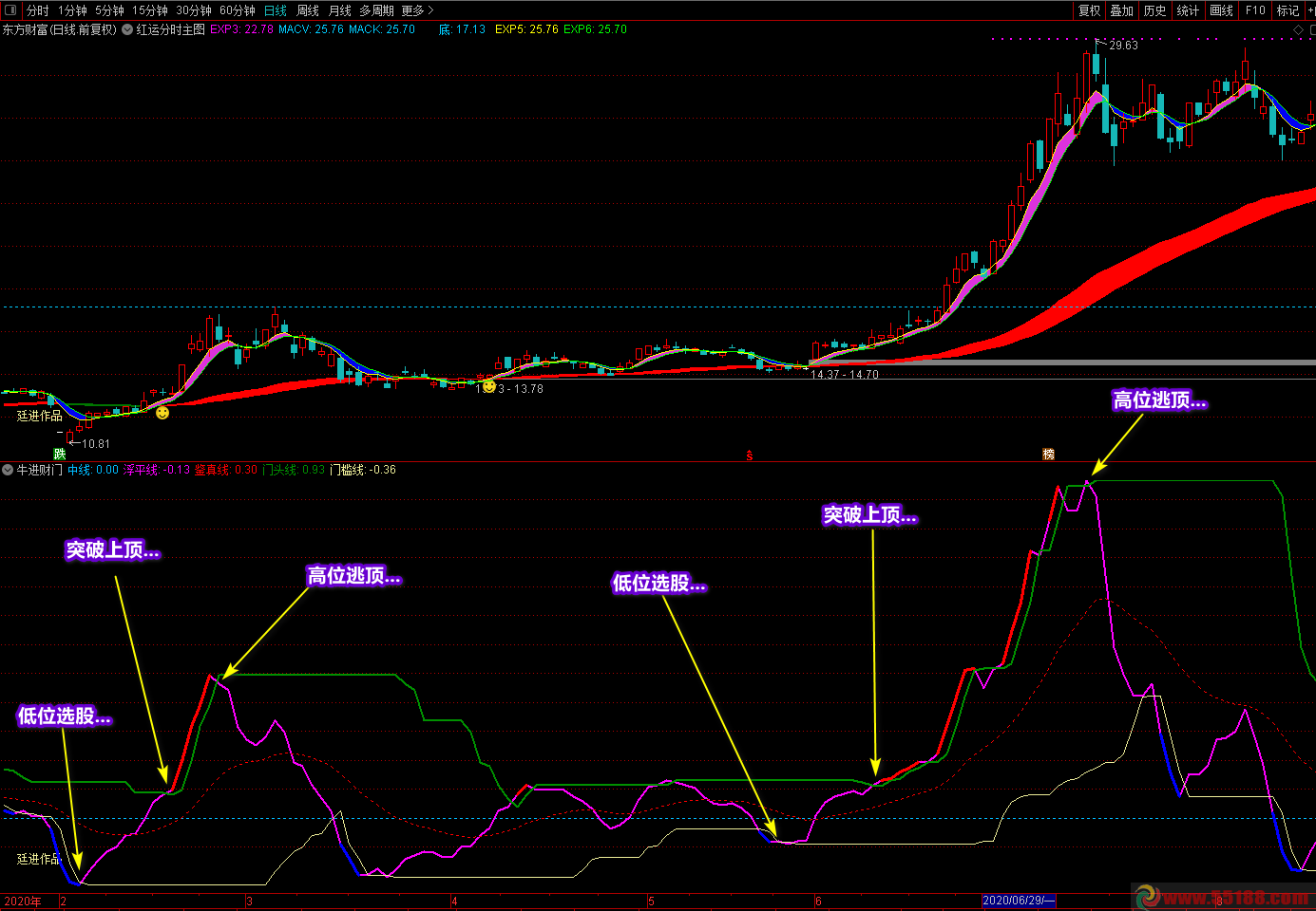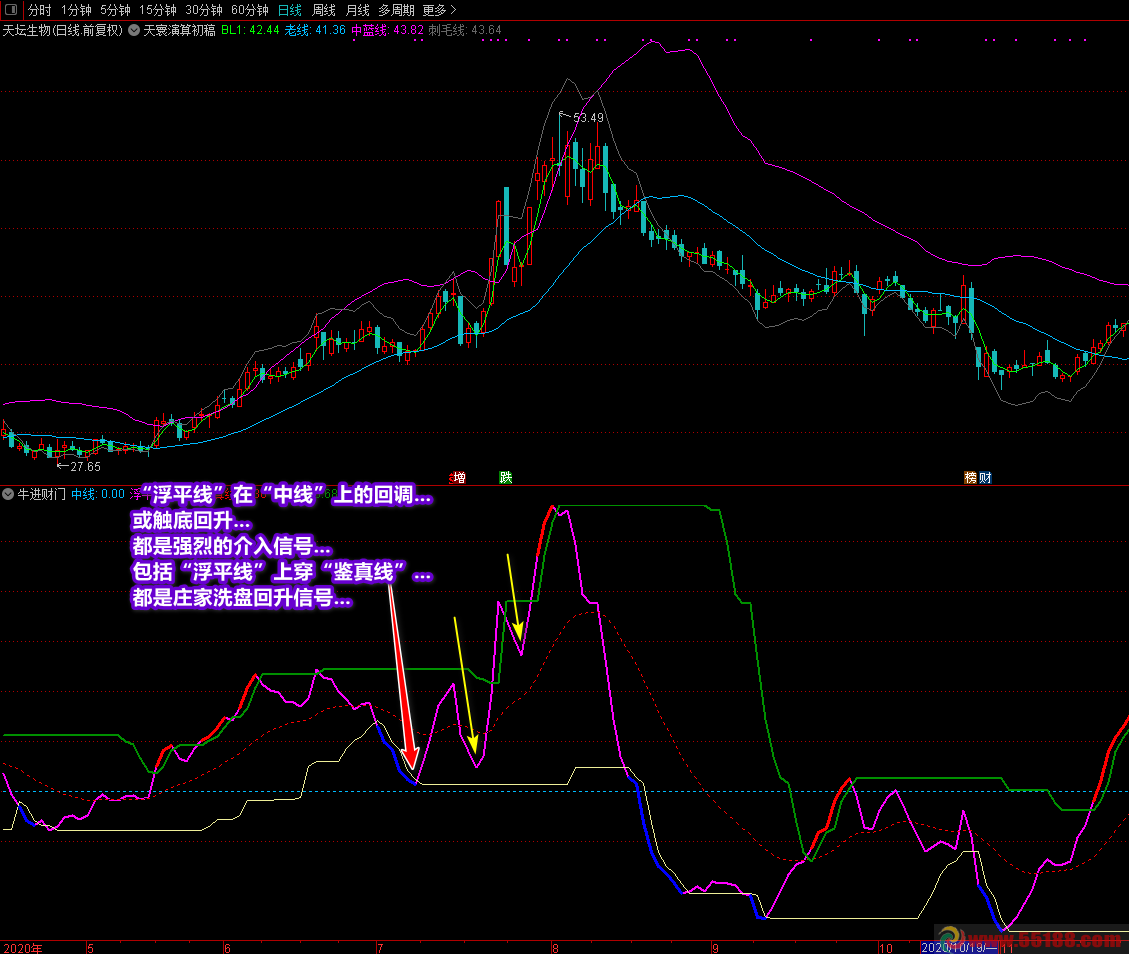 截图说明中已经说明了指标的思路和创作原则,截图说明中也详细标注了使用方法和操作要领。希望同学们拿到指标后,仔细揣摩指标的使用方法和操作流程。在他们完全了解操作要领之前,还需要多观察几次模拟操作,不要轻举妄动,等你掌握了操作方法再实际操作,这样你在实战中才能更有信心。