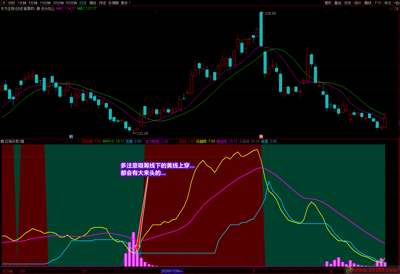 你和一些同学一样,你只是想在底部买,但这个底部不是即将上涨的底部。没有长线指标作为基底,你能知道它到底有多深吗?为什么不看看一些从底部上涨的股票?还是已经处于强势地位的股票?下午下班后在2楼加了一个典型的演示表单。如果你手里有长期指标,也可以看到那个时候的底部,一是有安全保险,二是有收益,三是不必来回调仓换股。其实你也看了我的一些帖子,从中你也谈到了趋势为王的重要性。不要执着于下跌的股票,除非它有热门题材或好消息,作为散户,你应该对上涨的股票多做文章。