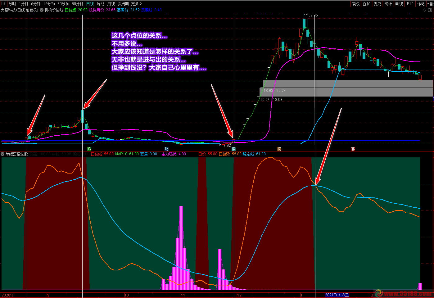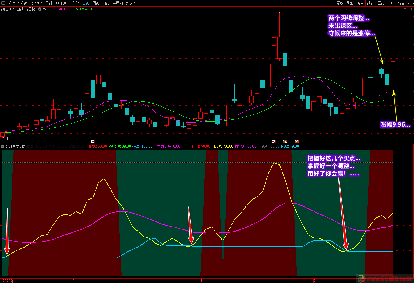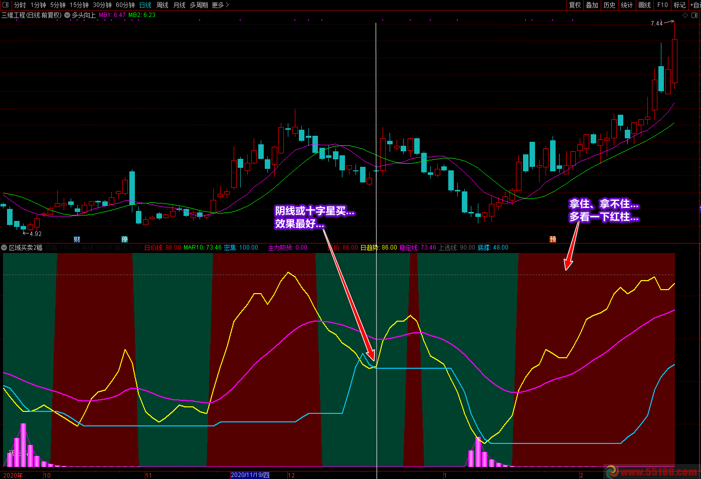 最近身体一直不舒服,总感觉吃了只苍蝇犯恶心,所以很少来论坛.....本来想写一篇教材来说明指标的用途,但是坐不了太久,所以总想和同学一起出去,感觉好一点。所以,简说,看截图说明理解可能比我的解释更明了。总之,按照截图说明看效果!祝大家进步和提高!