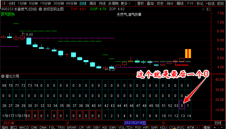例如下图:从最下面一排的0开始数,当其他三排都有0出现,那么最后一个0就是理论建仓点
