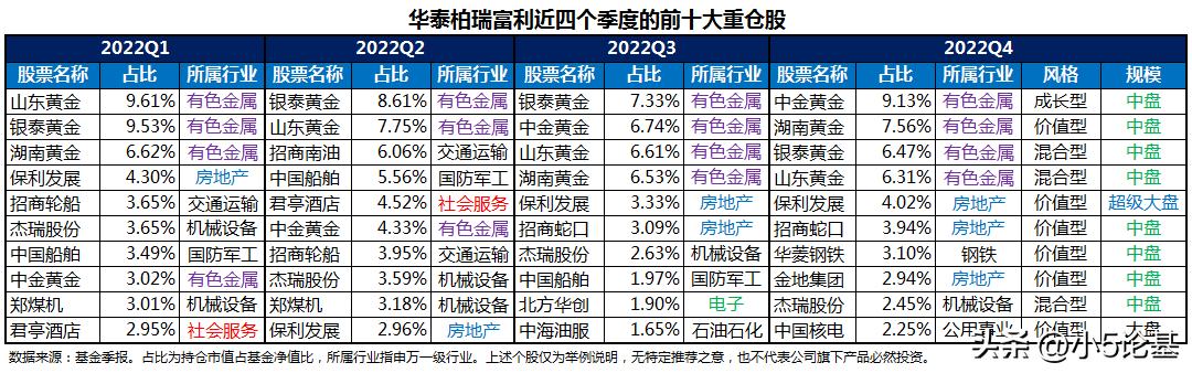 我们不妨以华泰柏瑞富利的历史持仓来看一下基金经理具体是如何做投资的。