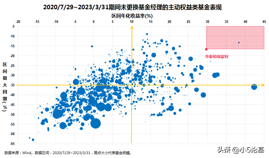 上图展示的是2020年7月29日至2023年3月31日期间未更换过基金经理的主动权益基金(股票仓位至少超过60%)的表现。