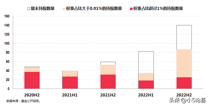 相对来说,组合的核心持股数量(权重占比超过1%的持股数量)则相对稳定: