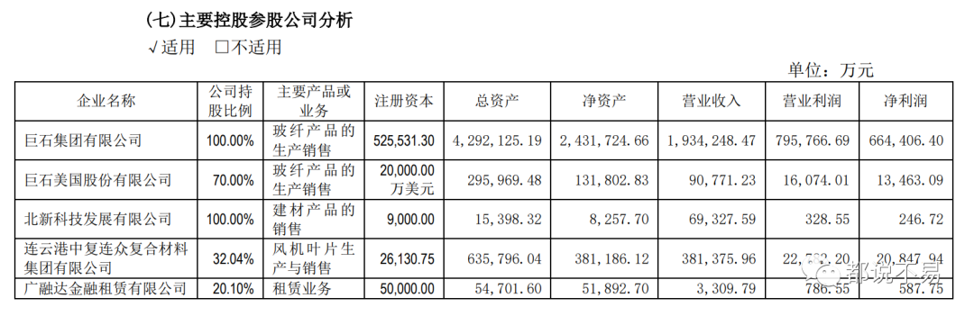 关于巨石的主要参控股公司的情况,我们这里要提到的是两家公司。