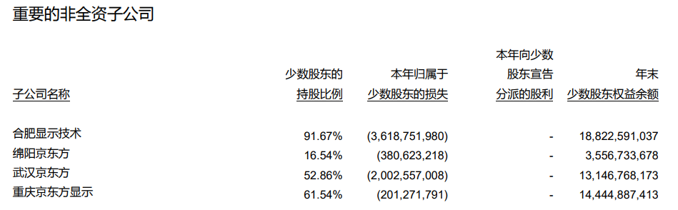 如果不是有多家这样的公司来承担亏损,京东方去年的扣非净利润就不是只亏损22个亿了。