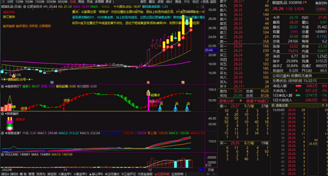 情绪龙战法系统已融入早盘竞价系统、黄金甲信号定制版面及其主副图指标、情绪龙定制版面及其主副图指标,早盘竞价结束即9:25后,可一键自动选股!键盘输入".001、.002~.004"可分别进入“黄金甲综合”、“情绪龙头”专属版面,退出按"ESC"键。本套战法系统适合超短线操盘,所配属主副图及其选G指标已经过精心设计,能完美指导盘中快速锁定目标!