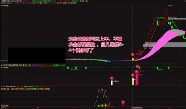 优化版:针对作者核心思路专门做接力涨和启动上涨共振的一个选股信号,当信号出现后,可以观察后面一周内回调到三分之一买入1成,当回调到三分之二的时候买入2成,合计三成,当跌破共振信号那天就是做止损即可,下面有详细说明图供参考
