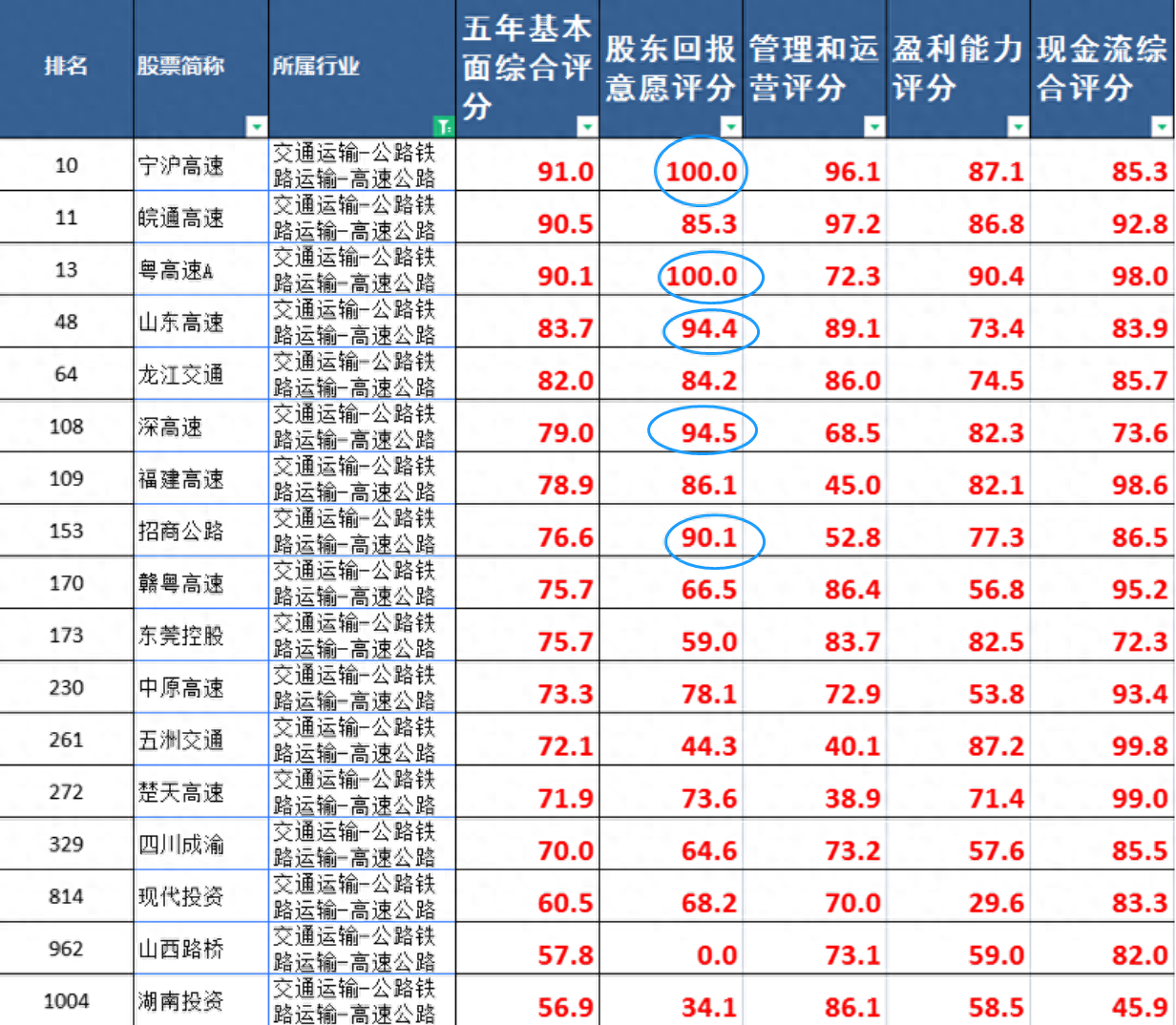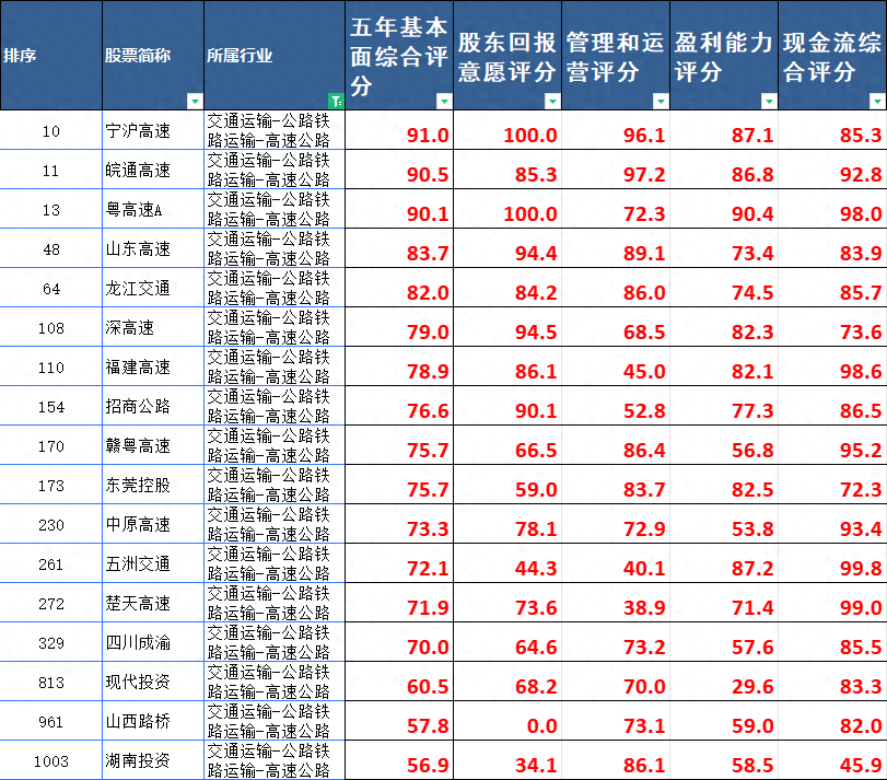 选高速公路就选股东回报意愿大于90分,股息率大于6%就行啊,买这个不就是冲着稳稳的股息来的吗?还想要啥自行车?