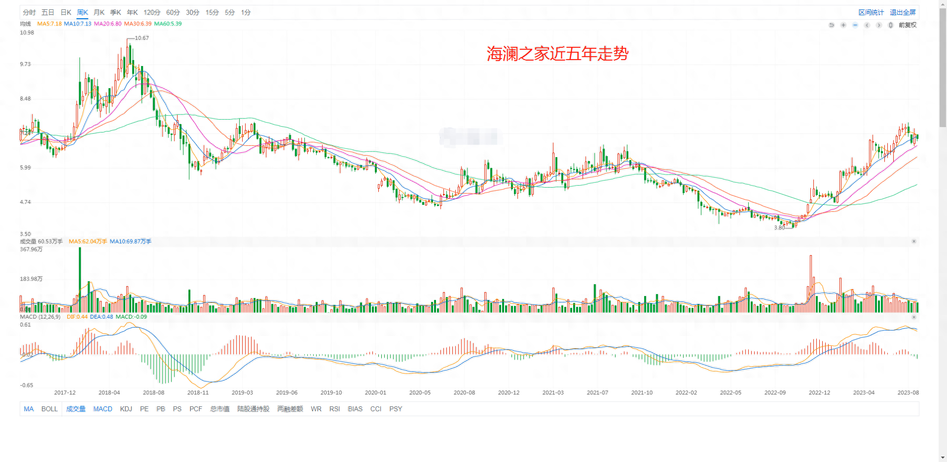 这是一家卖高端女装的,销售费用有点高,占40%。股利分配意愿不错,近五年股利支付率均值69%,现在的股息率为4.58%。很冷门的一只票。