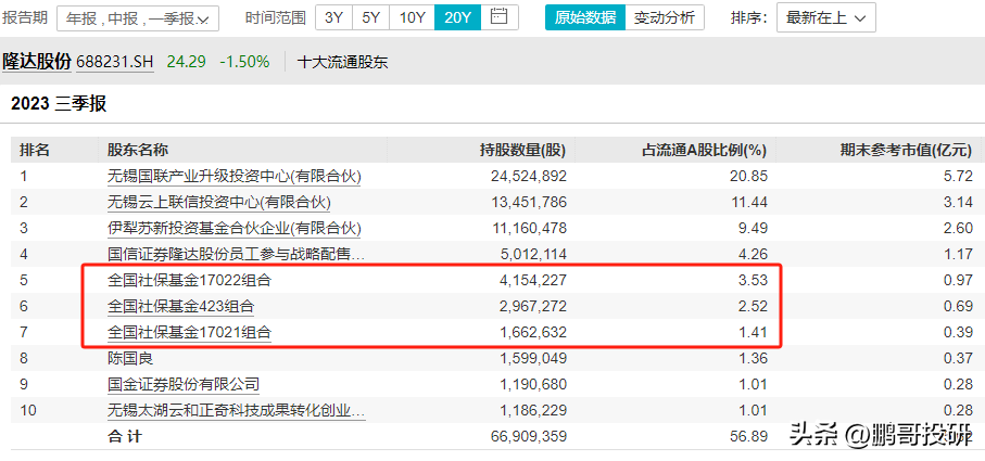 全国社保基金17022组合是第四大流通股东,社保基金423组合是第八大流通股东,社保基金17021组合是第九大流通股东;