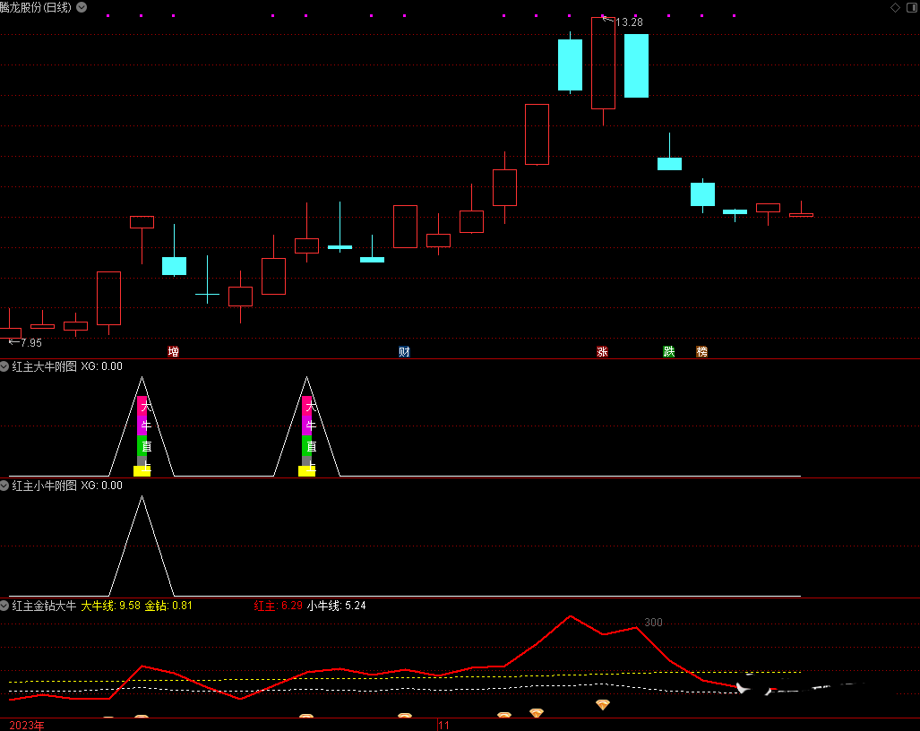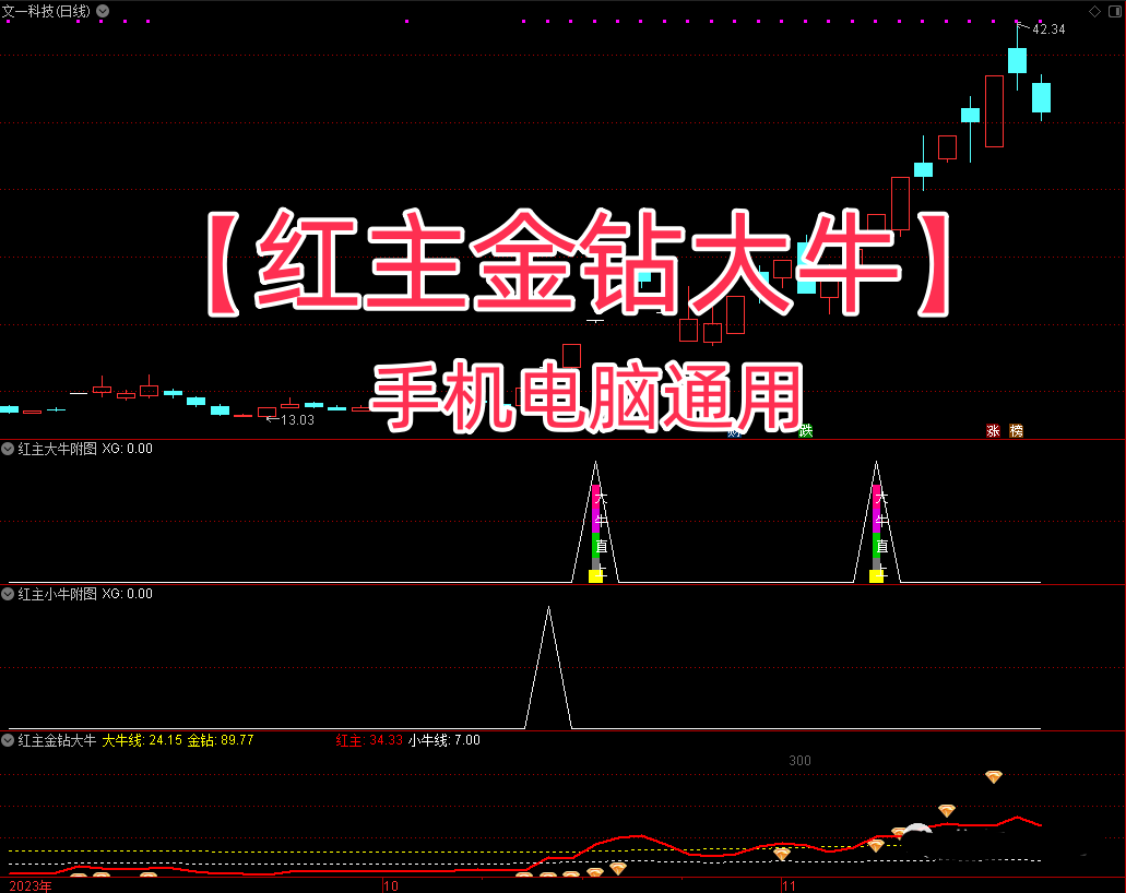 【红主金钻大牛】提供三个副图,两个选股公式,另外赠送一个【多空王主图】看趋势必备指标,检测无未来函数,手机电脑通达信通用,信号仅供参考!
