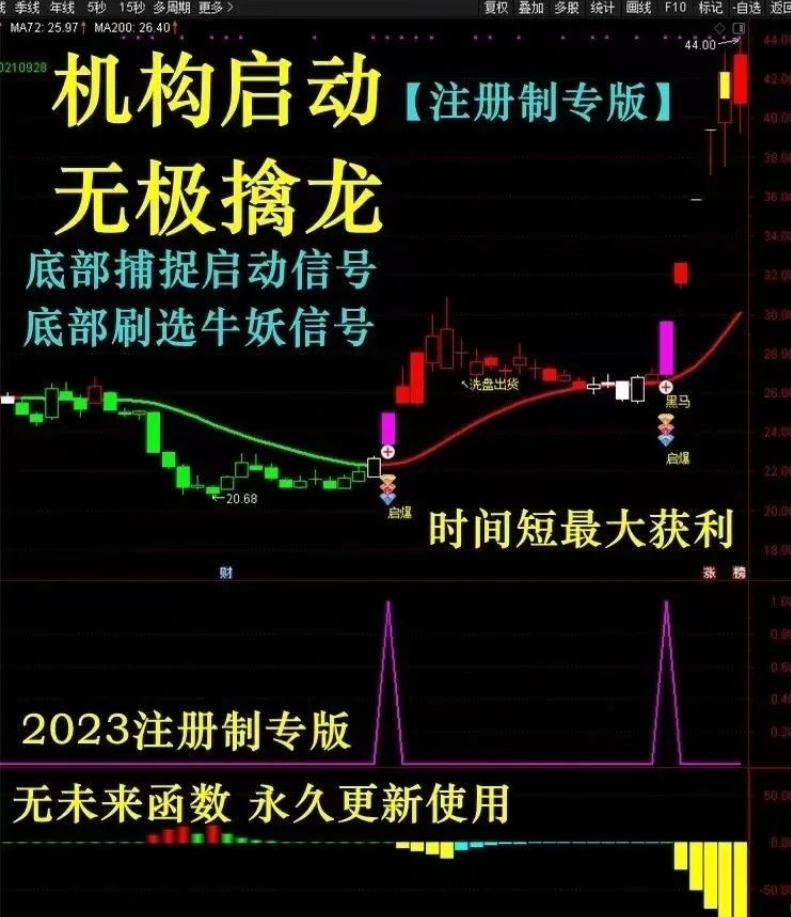 无极擒龙手主图附图选股指标主抓低位翻倍。