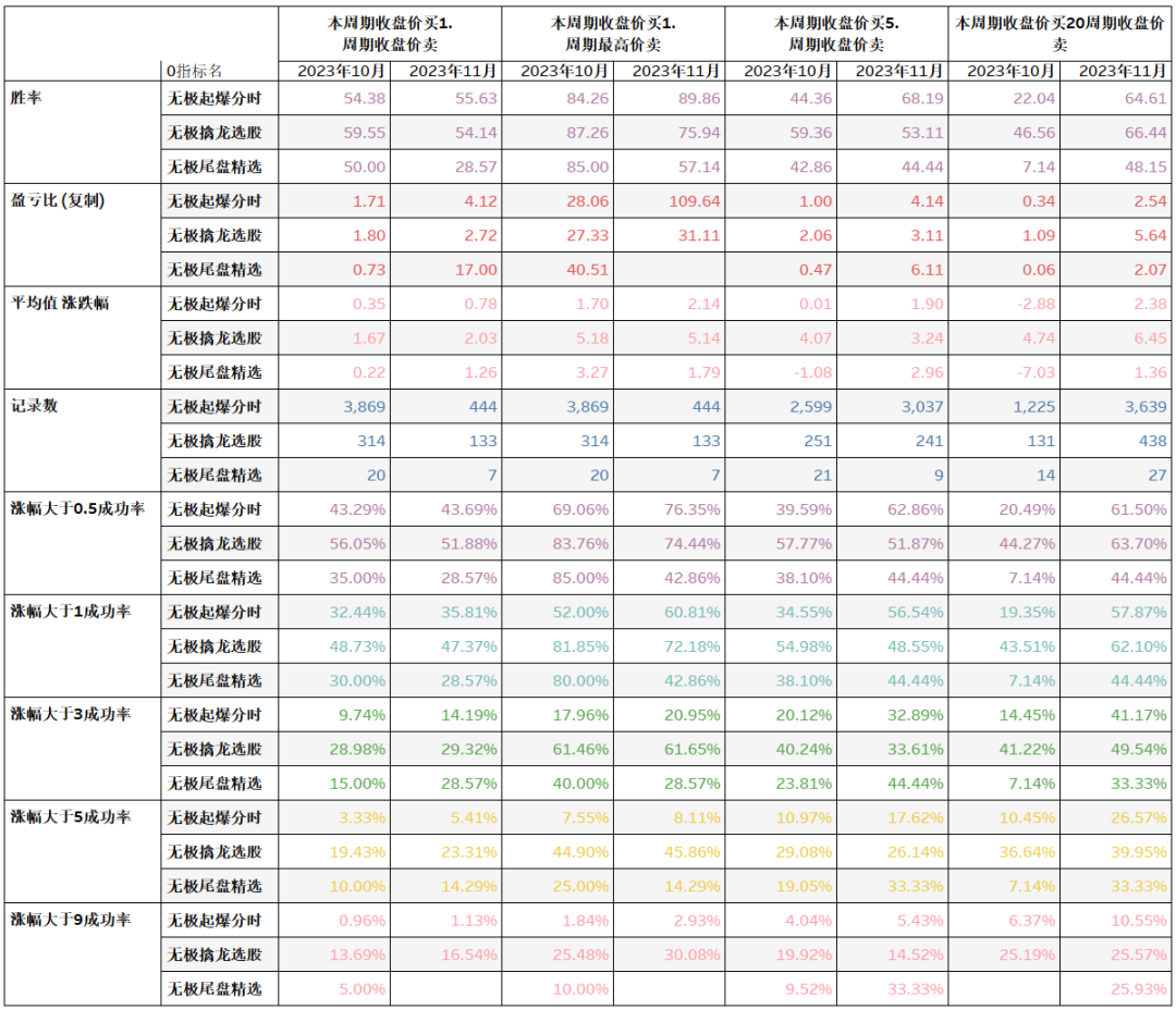 胜率/成功率--胜率表示盈利交易的比例即涨幅大于0的个股数占比,成功率,即涨幅大于1%的占比。