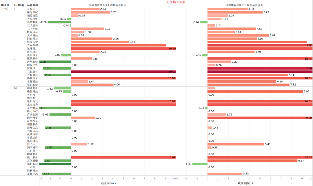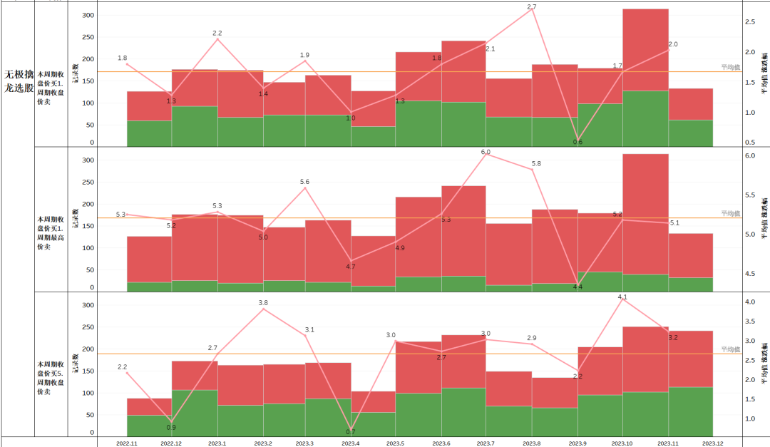 尾盘买次日最高卖各收益率下胜率占比。根据涨幅占比的分析结果,可以评估选股策略的准确性和盈利能力。比如,尾盘竞价买入,第二天盘中冲高就出,不管第二天收盘涨跌。