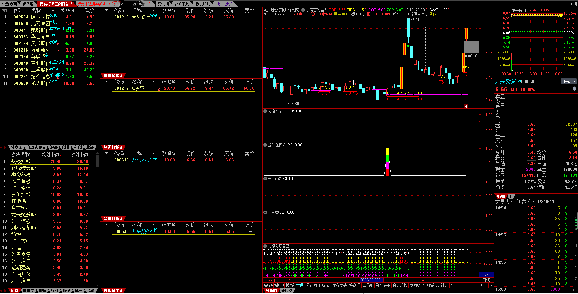 【4月战报】驿站指标【打板三剑客】信号票600630 龙头股份赏析
