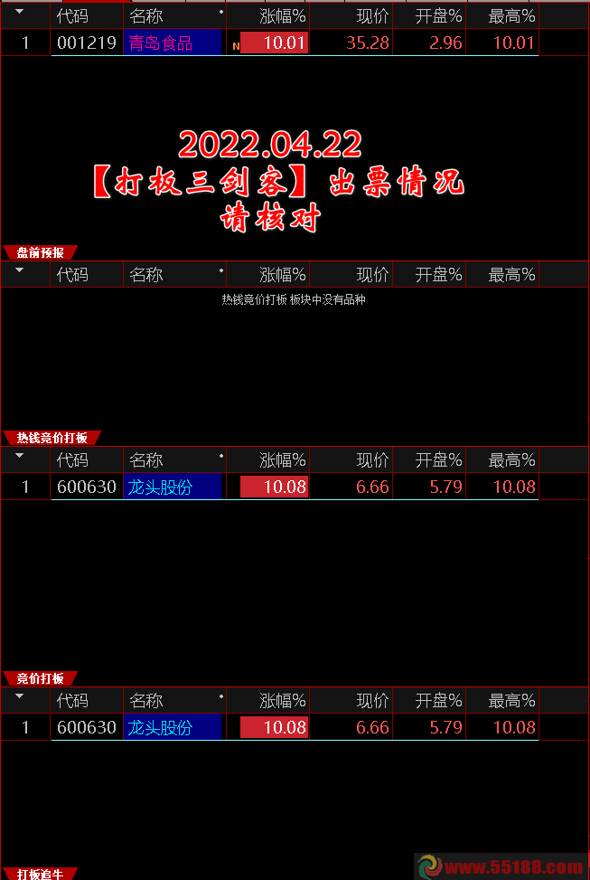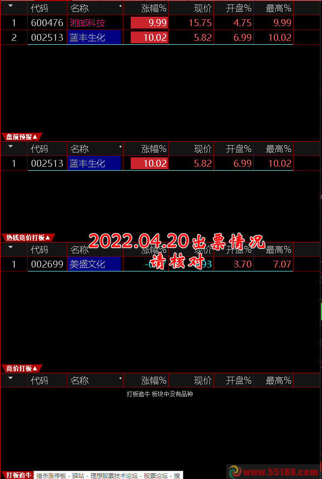 3、提醒:是追涨打板用,没有打板知识、经验或经历的同学请先学习、演练后再用于实战。