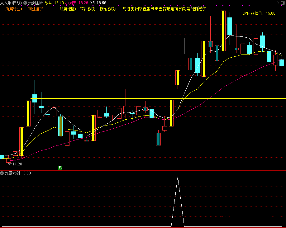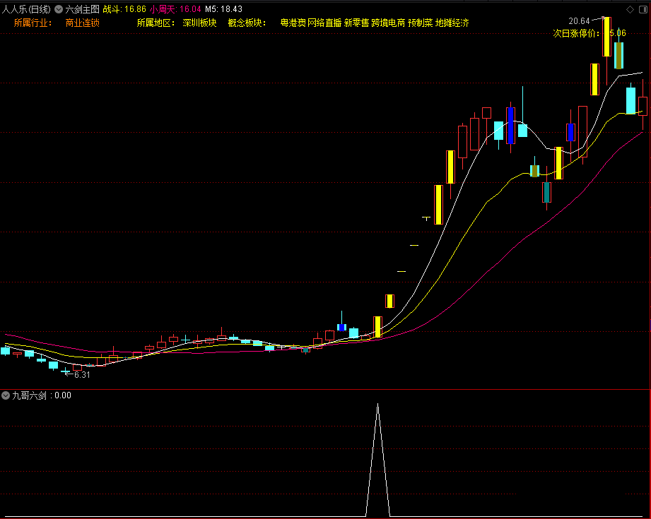 九哥六剑,九哥自创,多为市场即将走出的热股,比如10月份的特一药业涨幅160%,11月份的金陵药业五天四板,太龙药业连续4涨停。最近的人人乐连续4板。