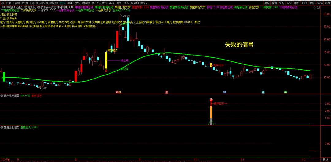 (7)经近三个月A股中出信号票观察,持股一段时间后失败的比较少,当股价在生命线以上时的信号基本没有失败的,失败的几个案例第二部分中有截图信号位置。