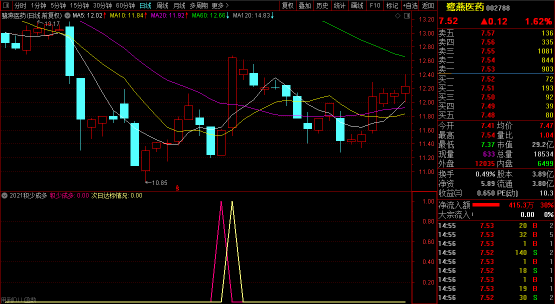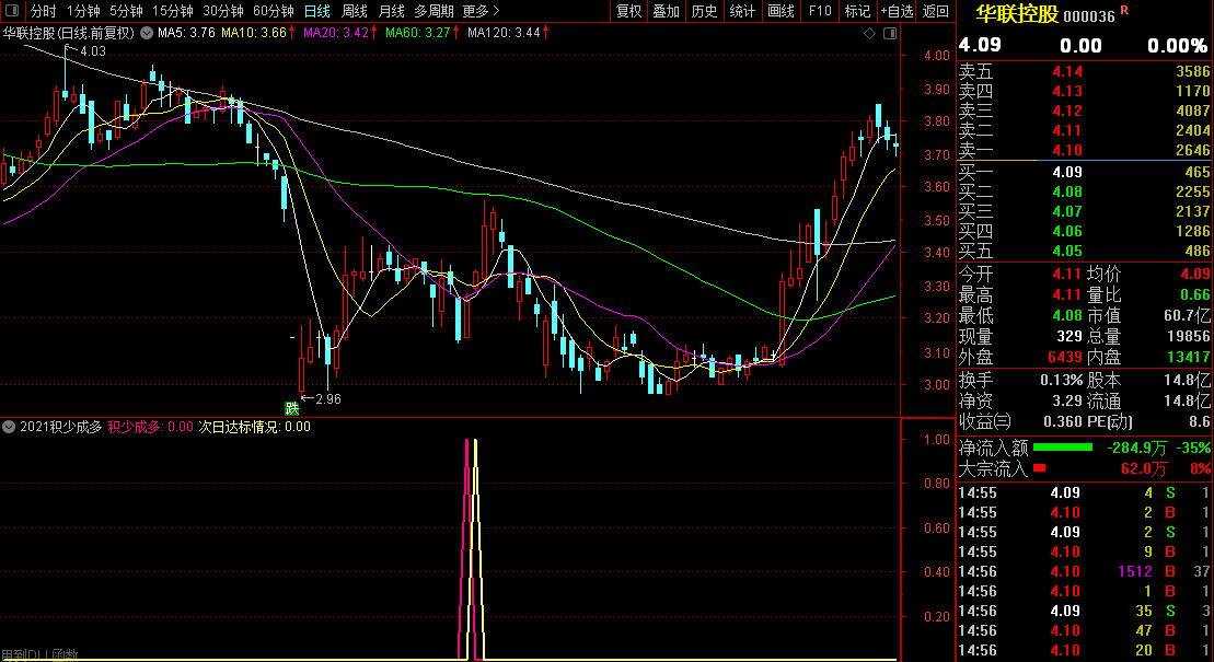下面的主帖给大家带来了一个新的思路,编写全新的今买明卖阳线买入策略微利操作模式指标——【2021满积少成多】。像往常一样,既然是微利操作模式,获利目标定在一两点,甚至零点几个点。每个人都必须清楚这一点。这个指标信号充足,操作机会多。只要不贪,谨慎操作,严格止盈止损,积少成多。我相信每个人都会有所收获。