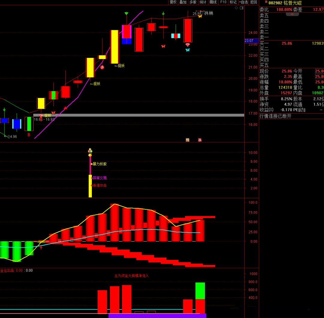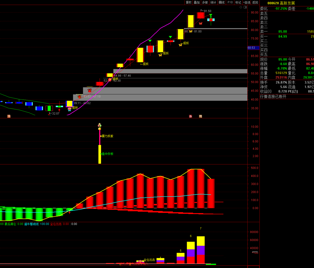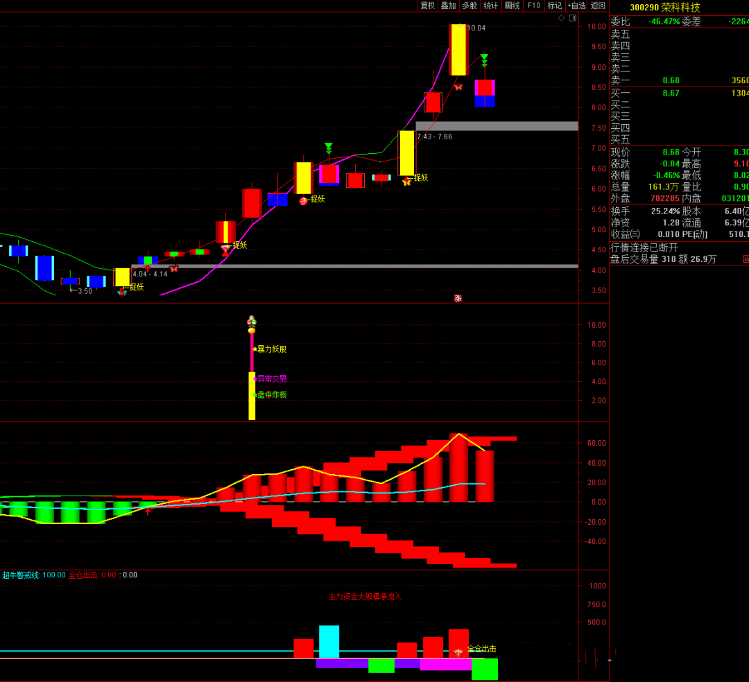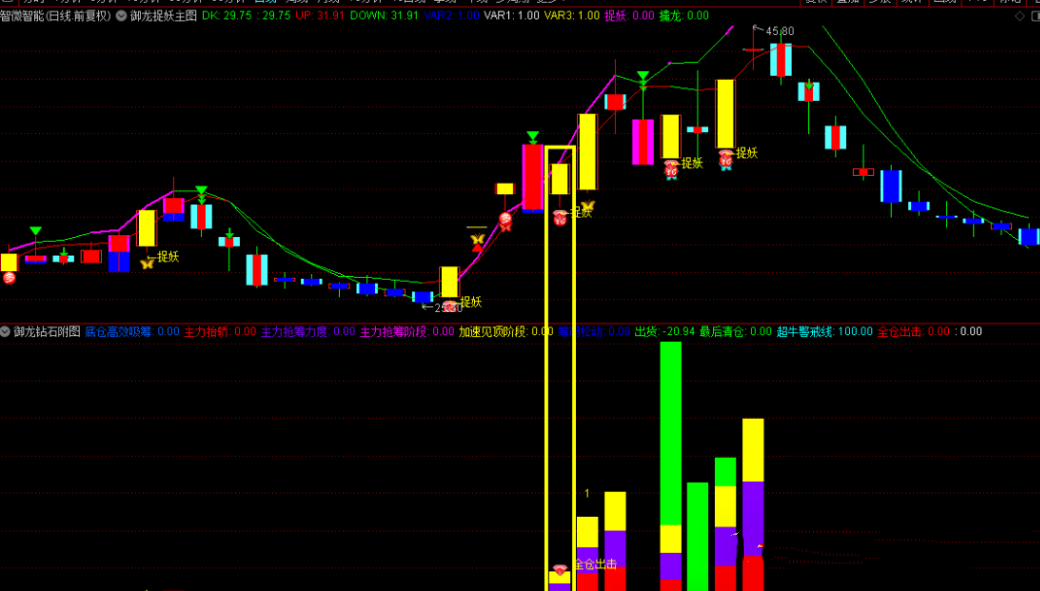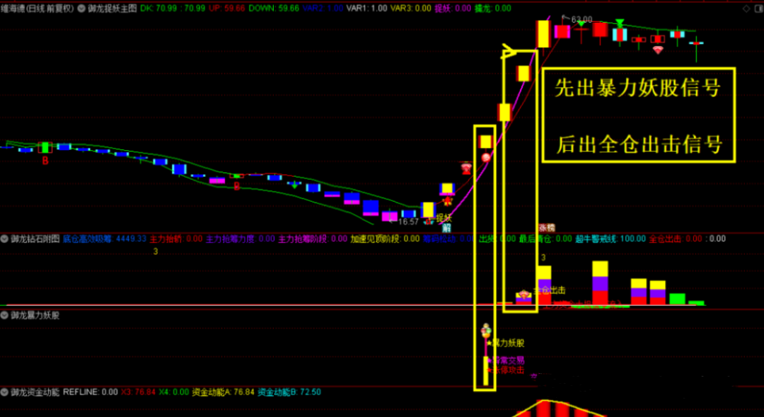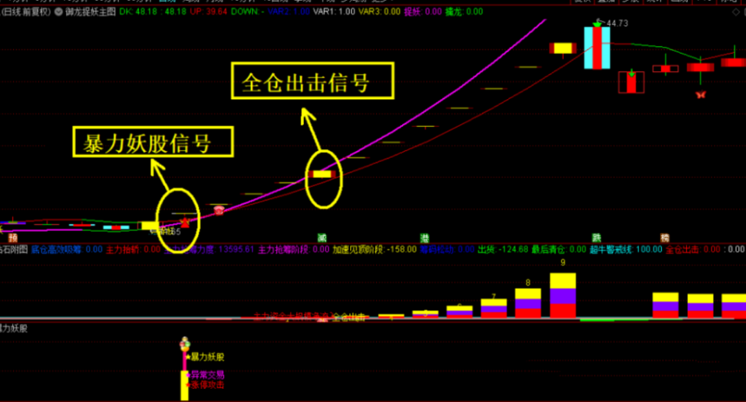 御龙系列-暴力妖股右侧擒妖模式主副选指标 主升浪带四信号共振及全仓优化版指标,本套指标是某高级版会员软件(一机一码限制)中核心指标,原版软件年费达5800,我们折腾几个晚上,终于成功提取出来了暴力妖股右侧擒妖模式主副选指标,主升浪带四信号共振及全仓优化版指标,无任何限制。