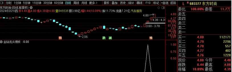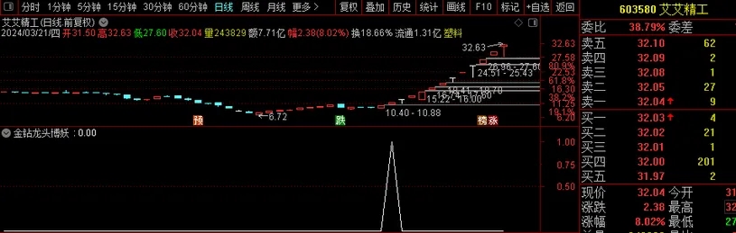 指标特点:出票少而精!市场热点连板龙头股均有捕获!贴近实战,一直以来是我们研究指标技术的基础,本指标同样采用强势趋势加速新思路编写,旨在寻求强势个股的转折反弹点,强势股在短暂整理后,会产生强烈的再次拉升意愿,指标以高效快速筛选支撑较强的个股信号并大幅提高信号实战胜率;
