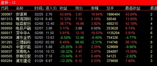 指标通过《首板牛》独特算法筛选低位首板个股,用《追板》排序列出符合上涨逻辑的强势要素,锁定排序第一个股在盘中择机介入。通过A股测试数据显现,指标成功率高、排序第一票受益幅度大的优点。盘中择机介入能提升当天溢价,仓位把握方便,是追板指标的首选!同时指标可以在股票池中运行,简单高效抓牛股。